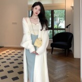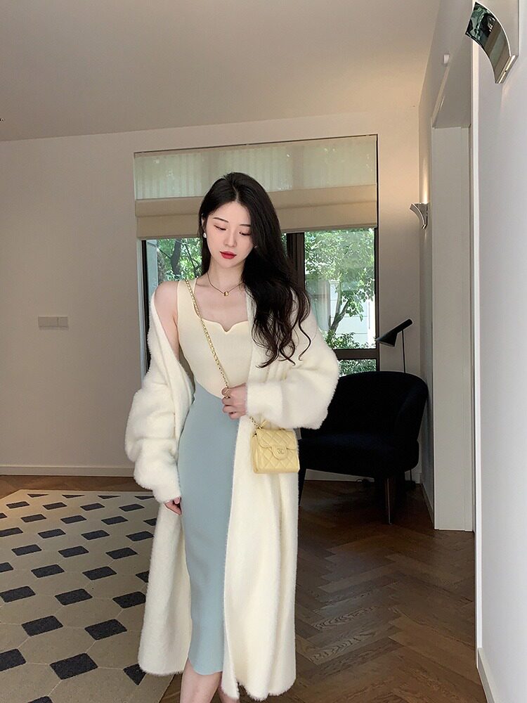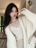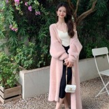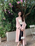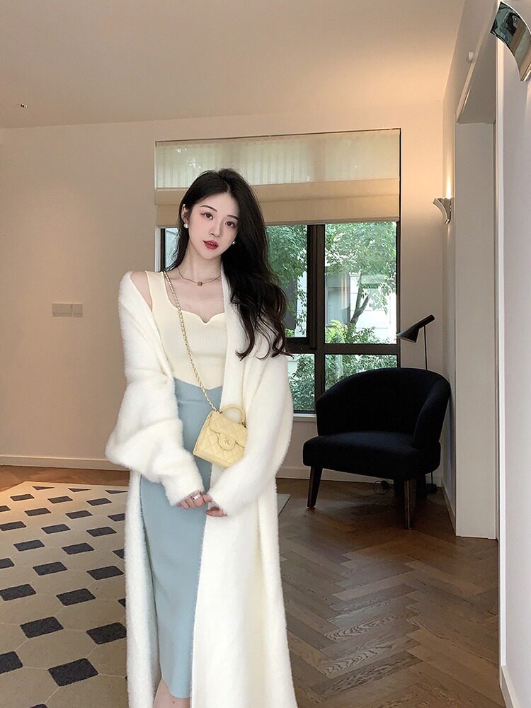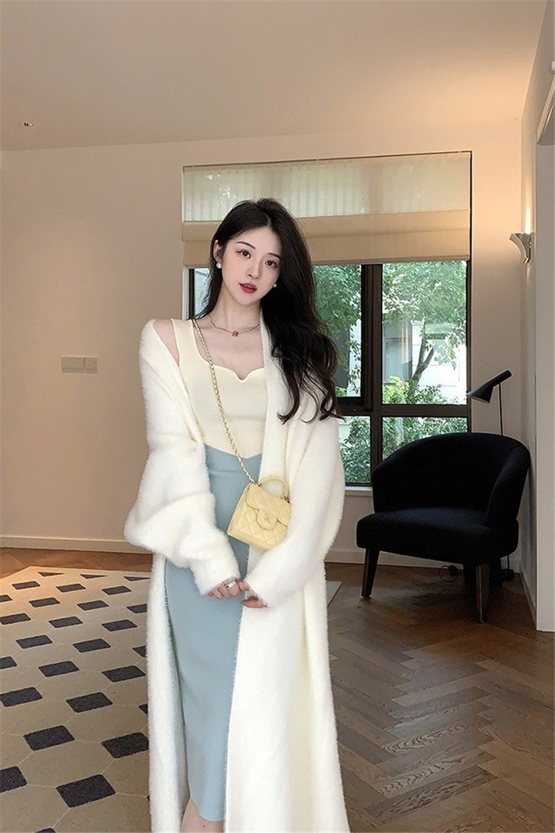 Белый бархатный длинный трикотажный свитер, куртка, кардиган, увеличенная толщина