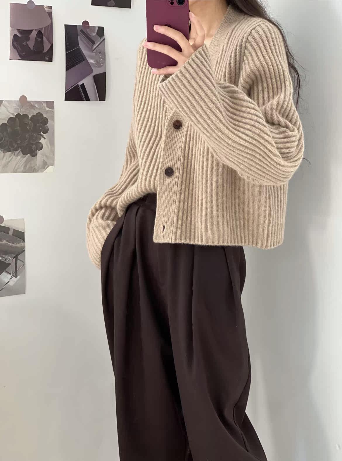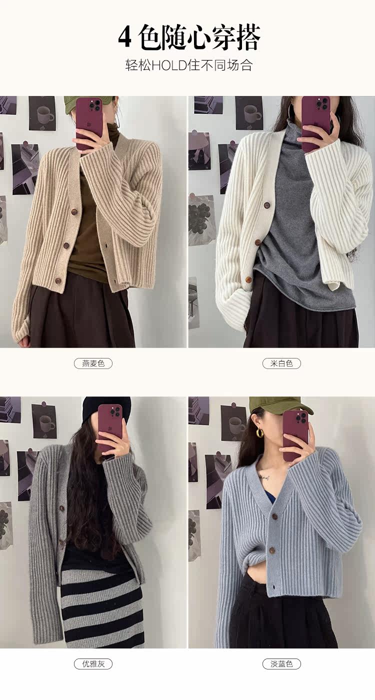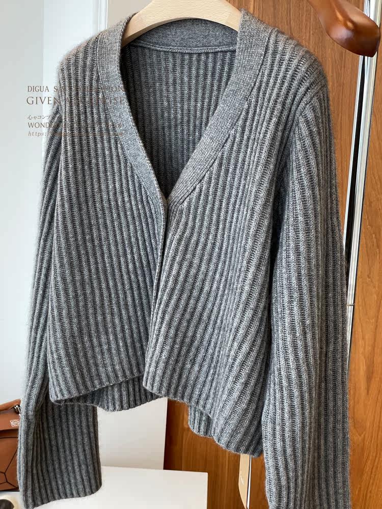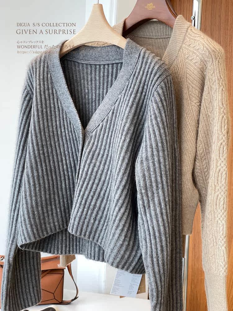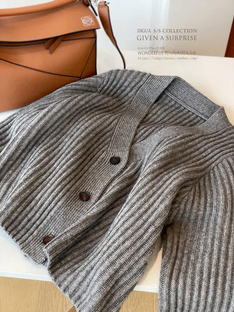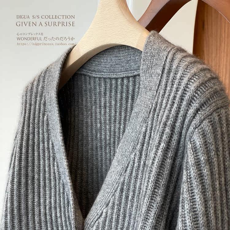 Дизайнерский шерстяной кардиган, демисезонный свитер, осенняя куртка, увеличенная толщина, V-образный вырез
