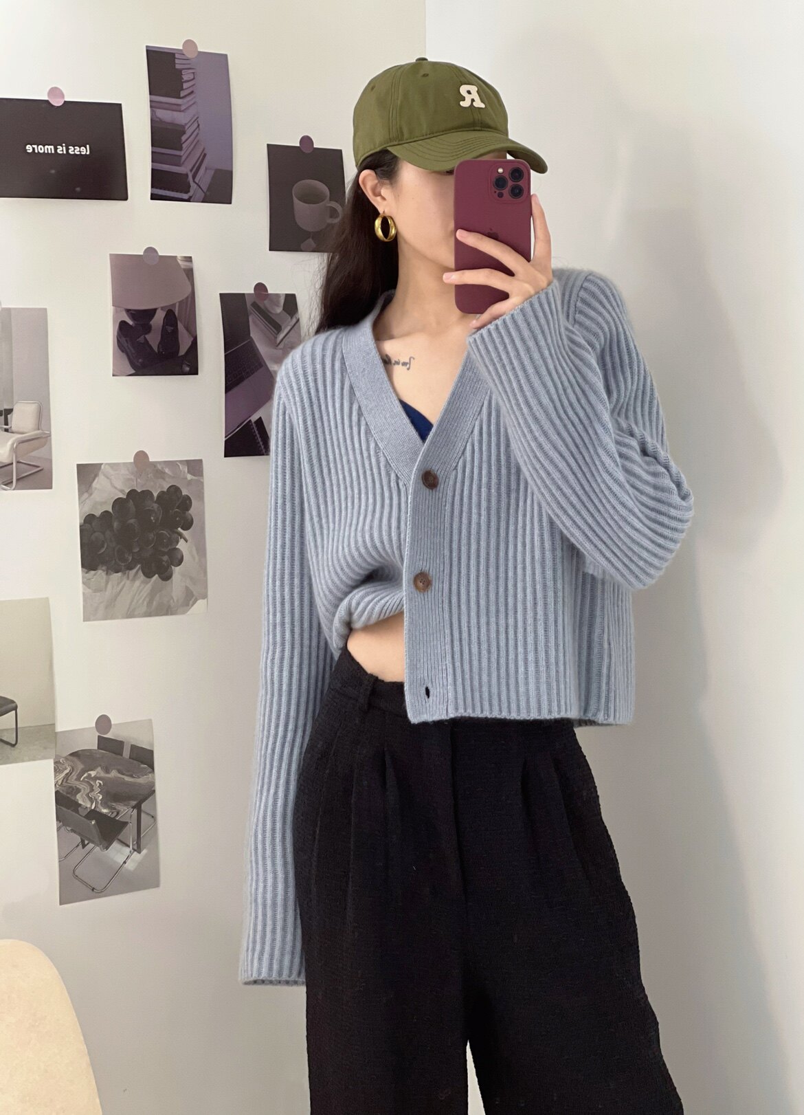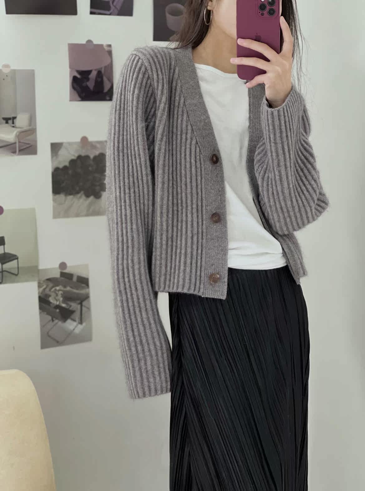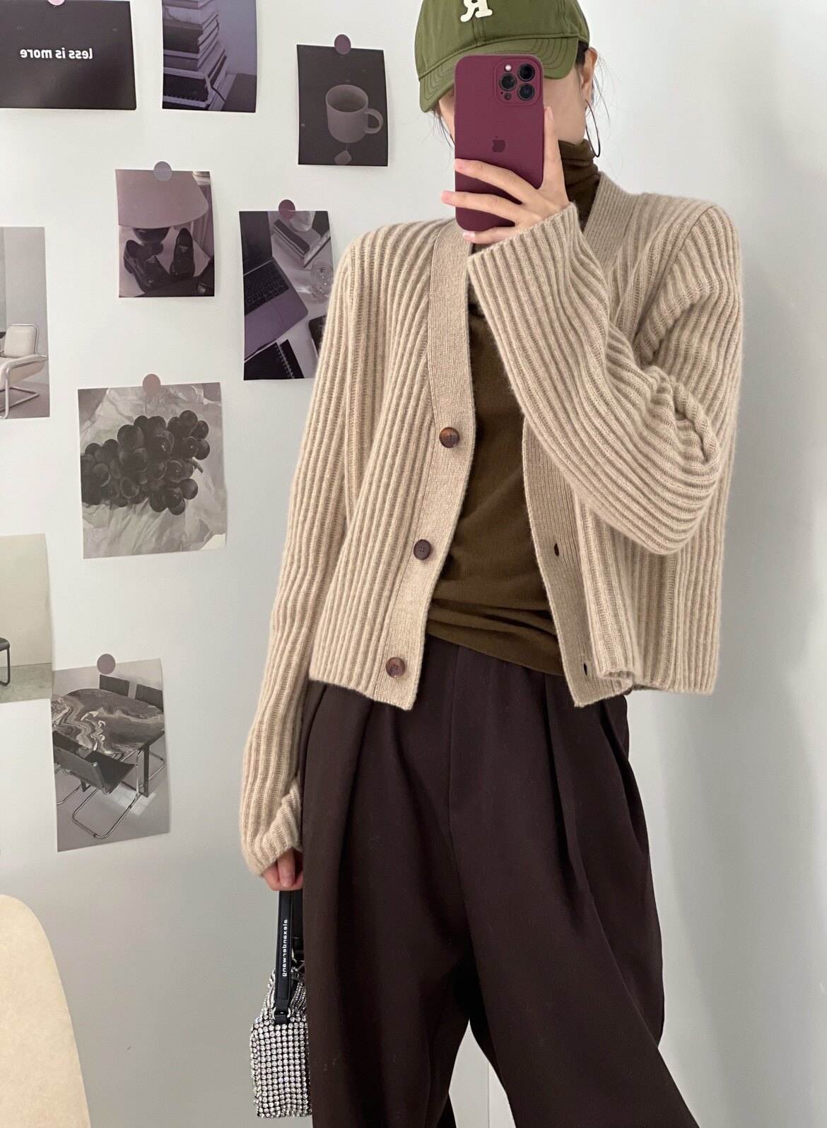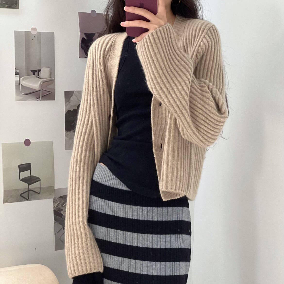 Дизайнерский шерстяной кардиган, демисезонный свитер, осенняя куртка, увеличенная толщина, V-образный вырез
