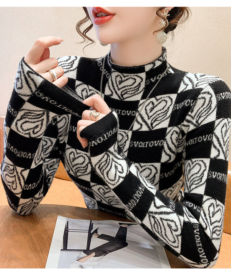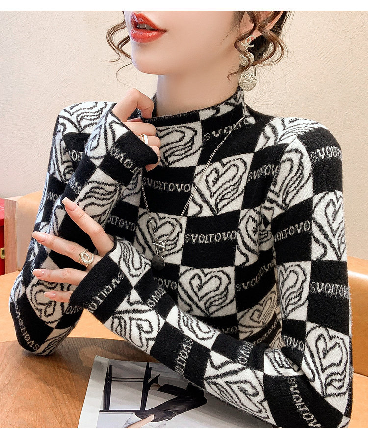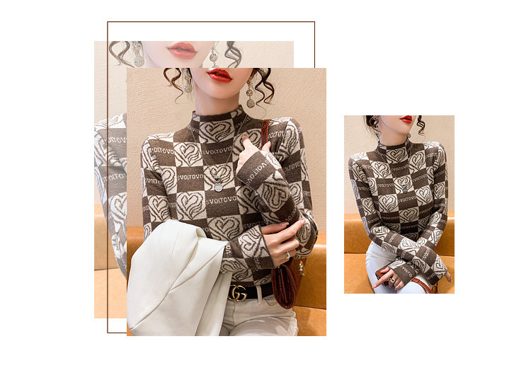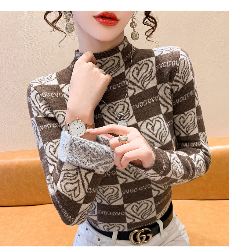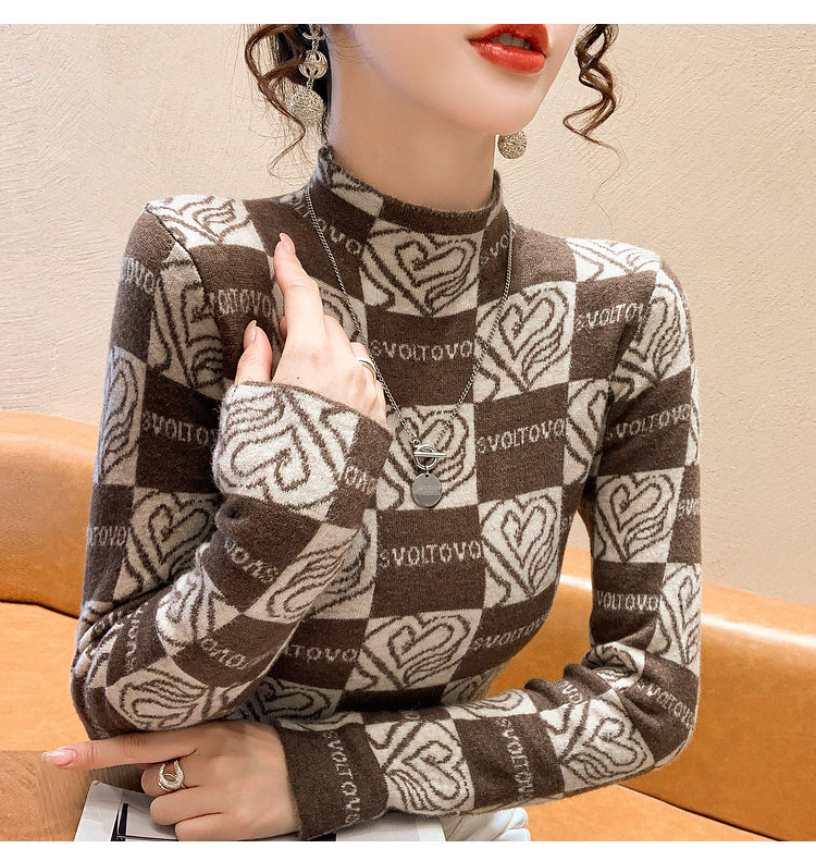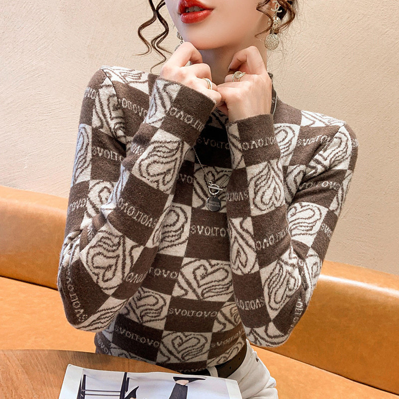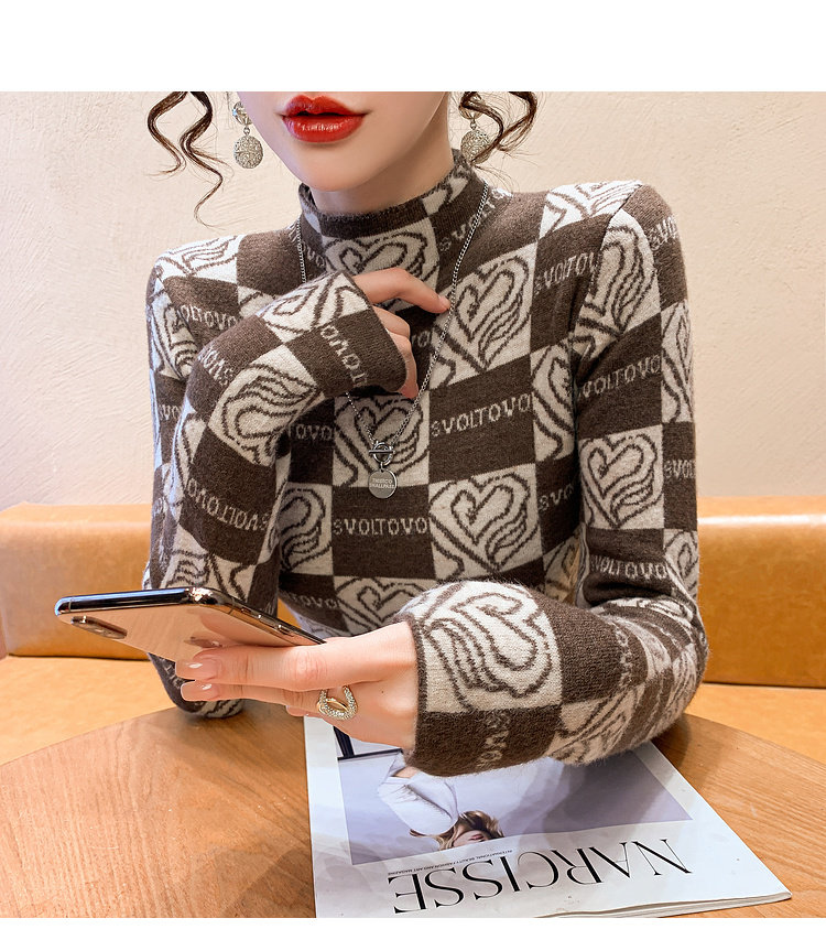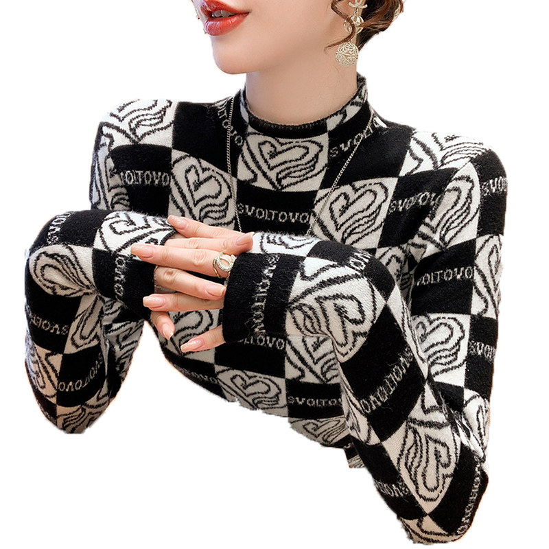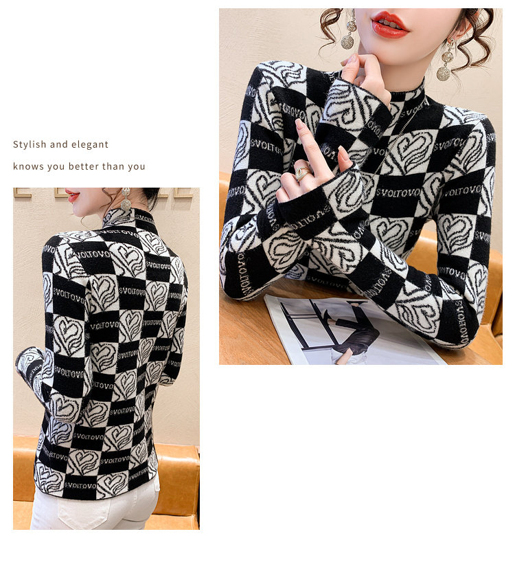 Утепленный трикотажный базовый приятный телу свитер, в западном стиле, высокий воротник, облегающий крой