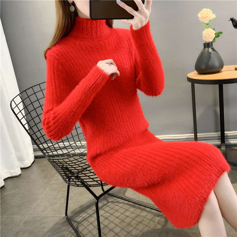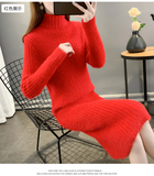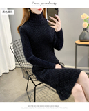 Зимний бархатный длинный трикотажный эластичный базовый приятный телу свитер, увеличенная толщина, средней длины, облегающий крой