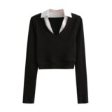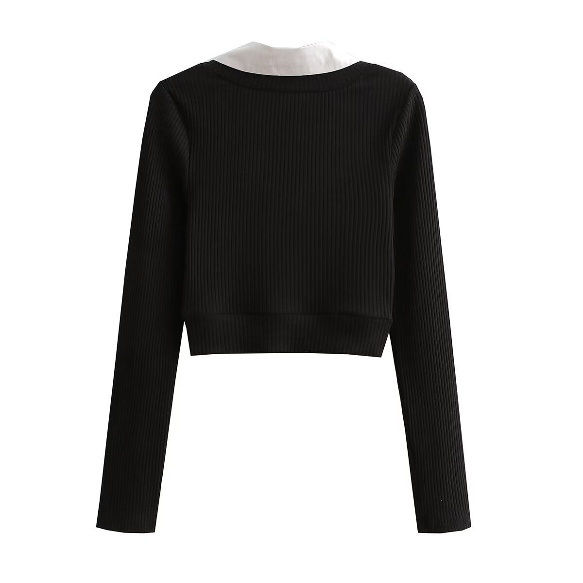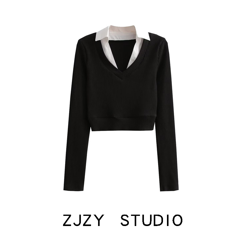 Короткий приталенный лонгслив, трикотажный свитер, европейский стиль, французский стиль