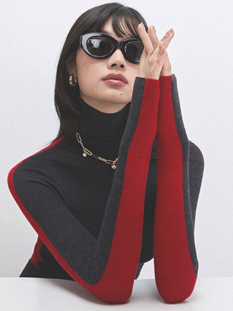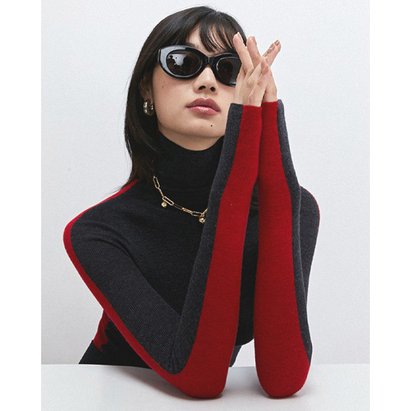 Демисезонный трикотажный базовый свитер, французский стиль, изысканный стиль, в западном стиле, облегающий крой