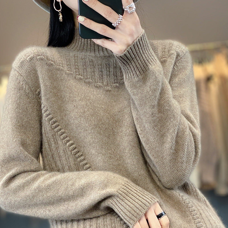 Шерстяной базовый трикотажный кашемировый свитер для отдыха, высокий воротник, увеличенная толщина, оверсайз, свободный крой