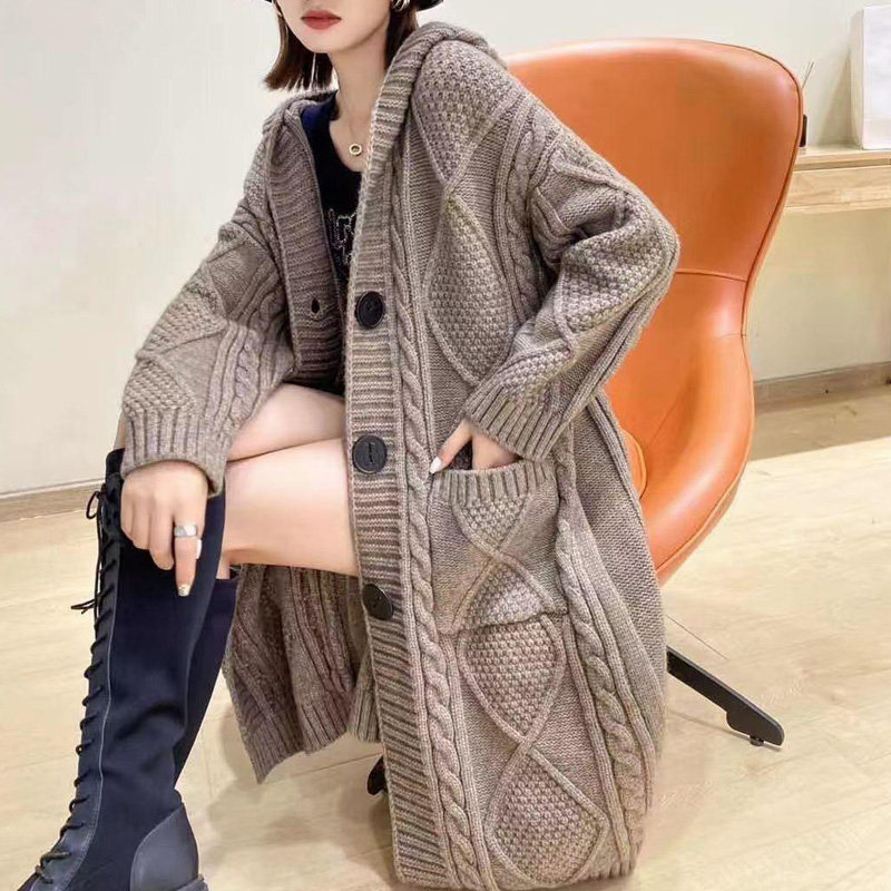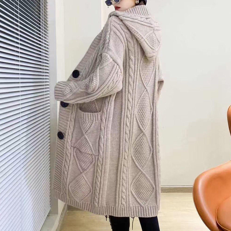 Кардиган, осенний свитер, длинная толстовка с капюшоном, в западном стиле, в корейском стиле, средней длины
