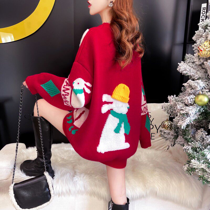 Красный демисезонный дизайнерский свитер, увеличенная толщина, коллекция 2023, в западном стиле, свободный крой, тренд сезона