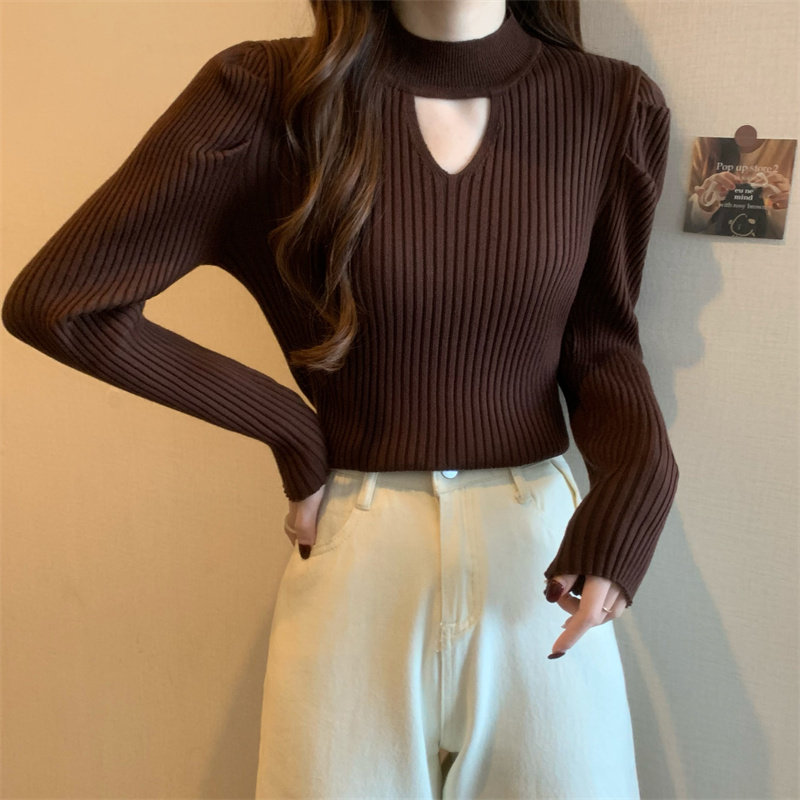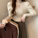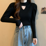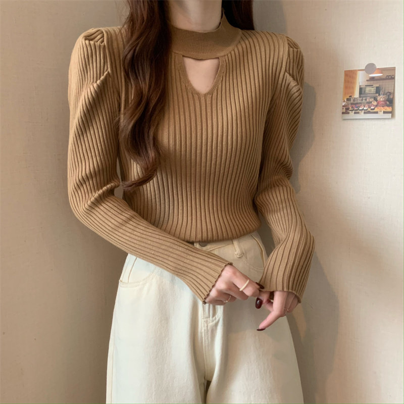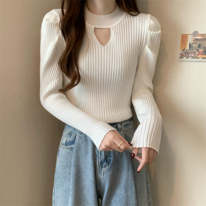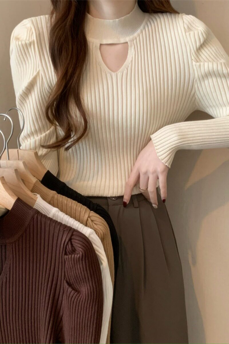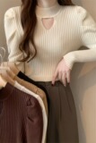 Демисезонный дизайнерский трикотажный свитер, рукава фонарики, тренд сезона, французский стиль