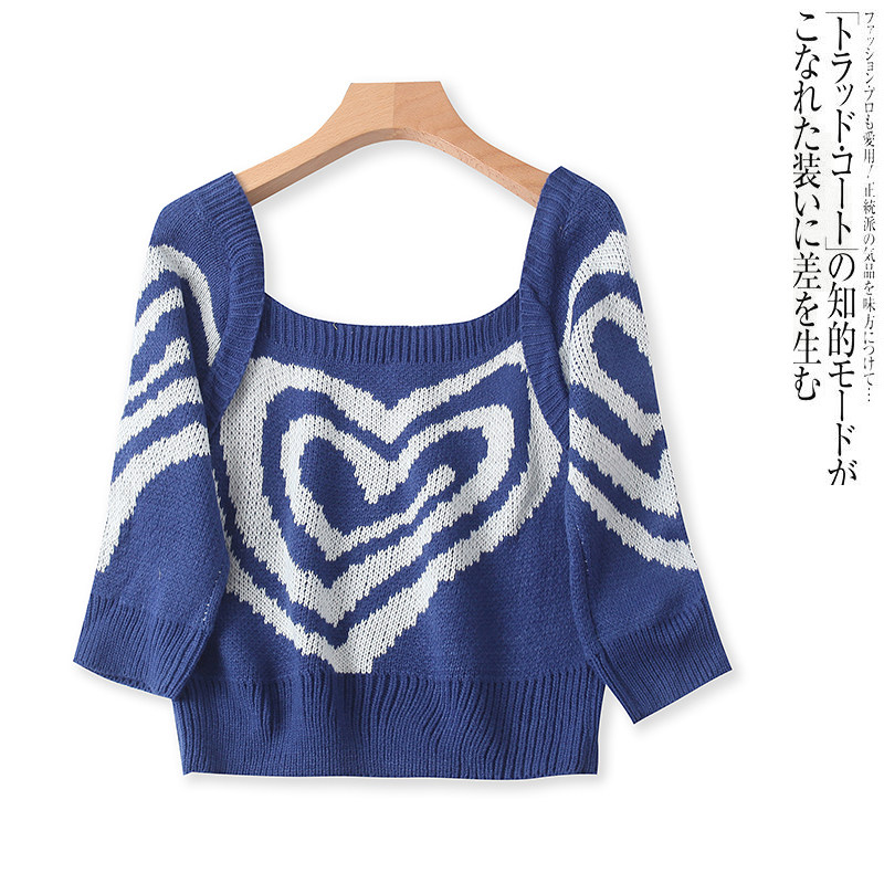 (Трансграничная торговля), короткий трикотажный осенний модный приталенный милый эластичный свитер, квадратный вырез