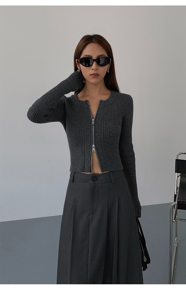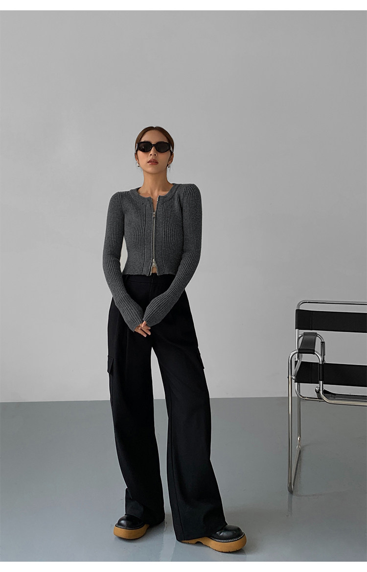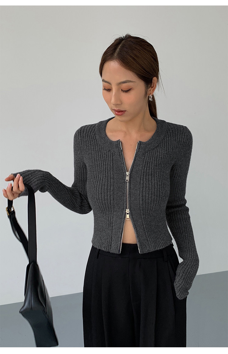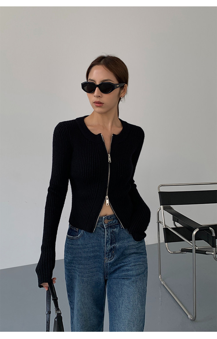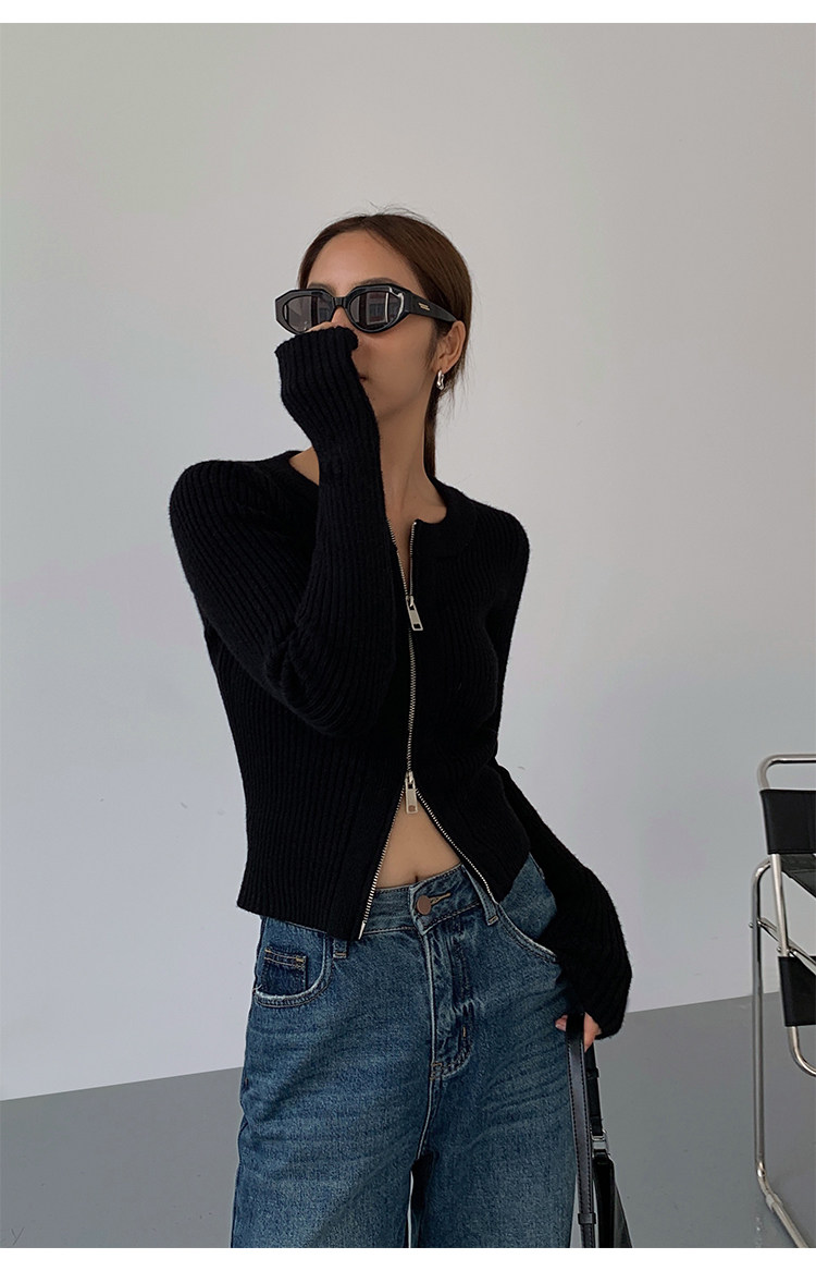 Черный весенний кардиган с молнией, короткий лонгслив, 2023, в корейском стиле, с рукавом
