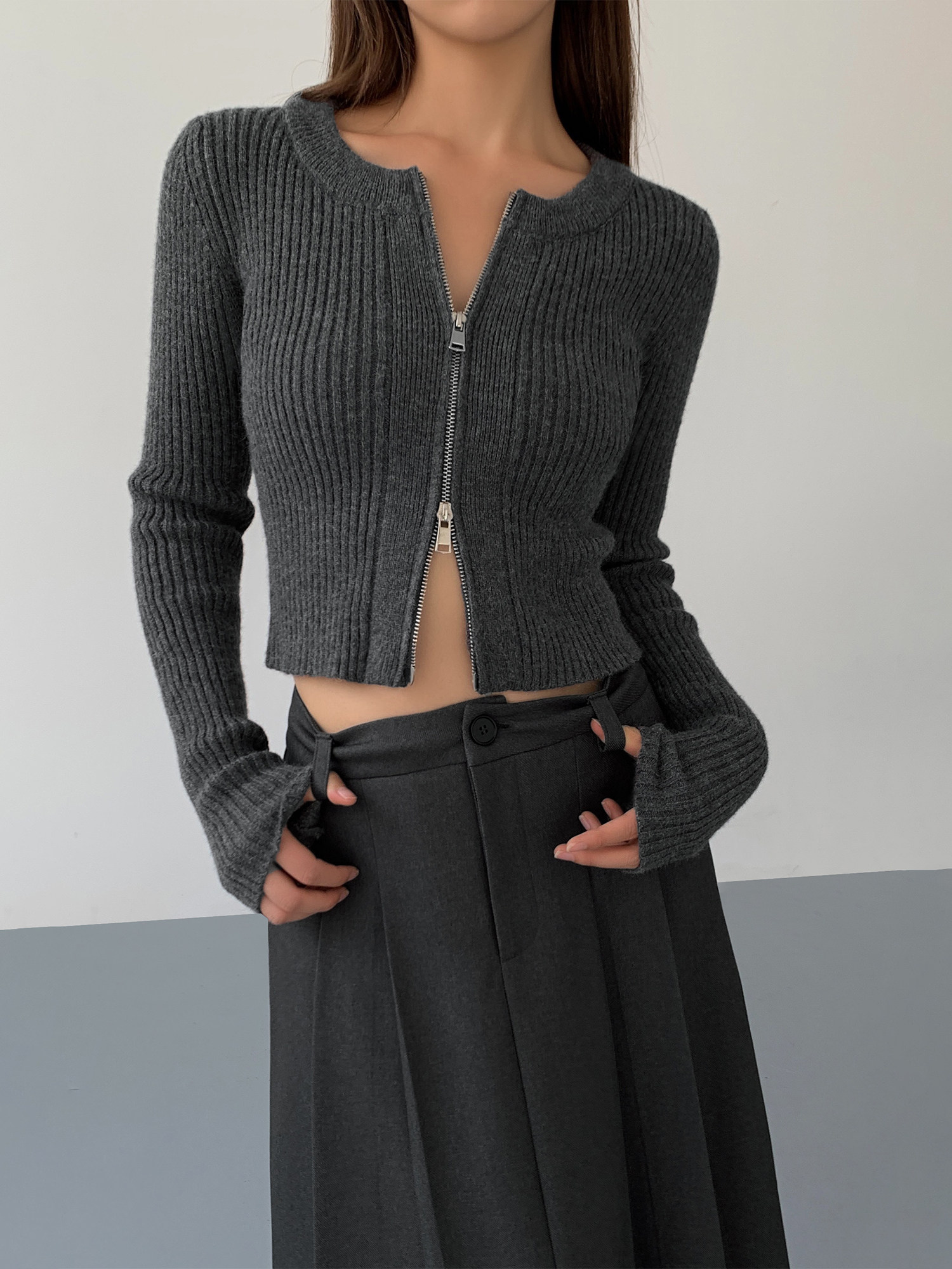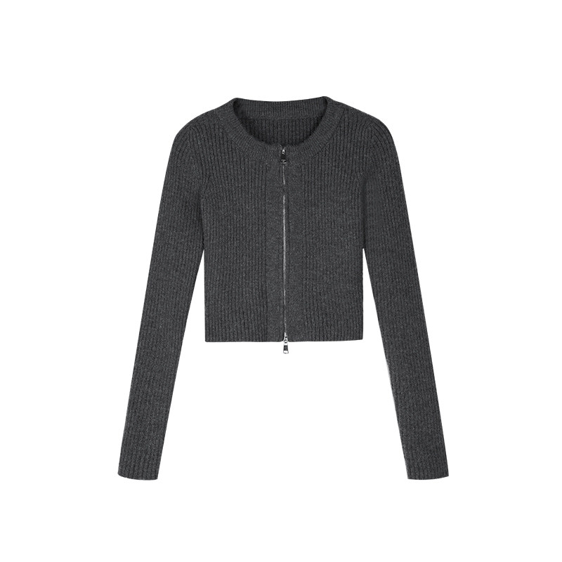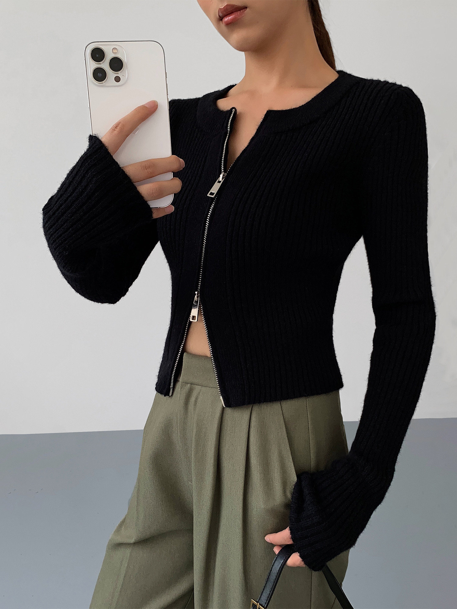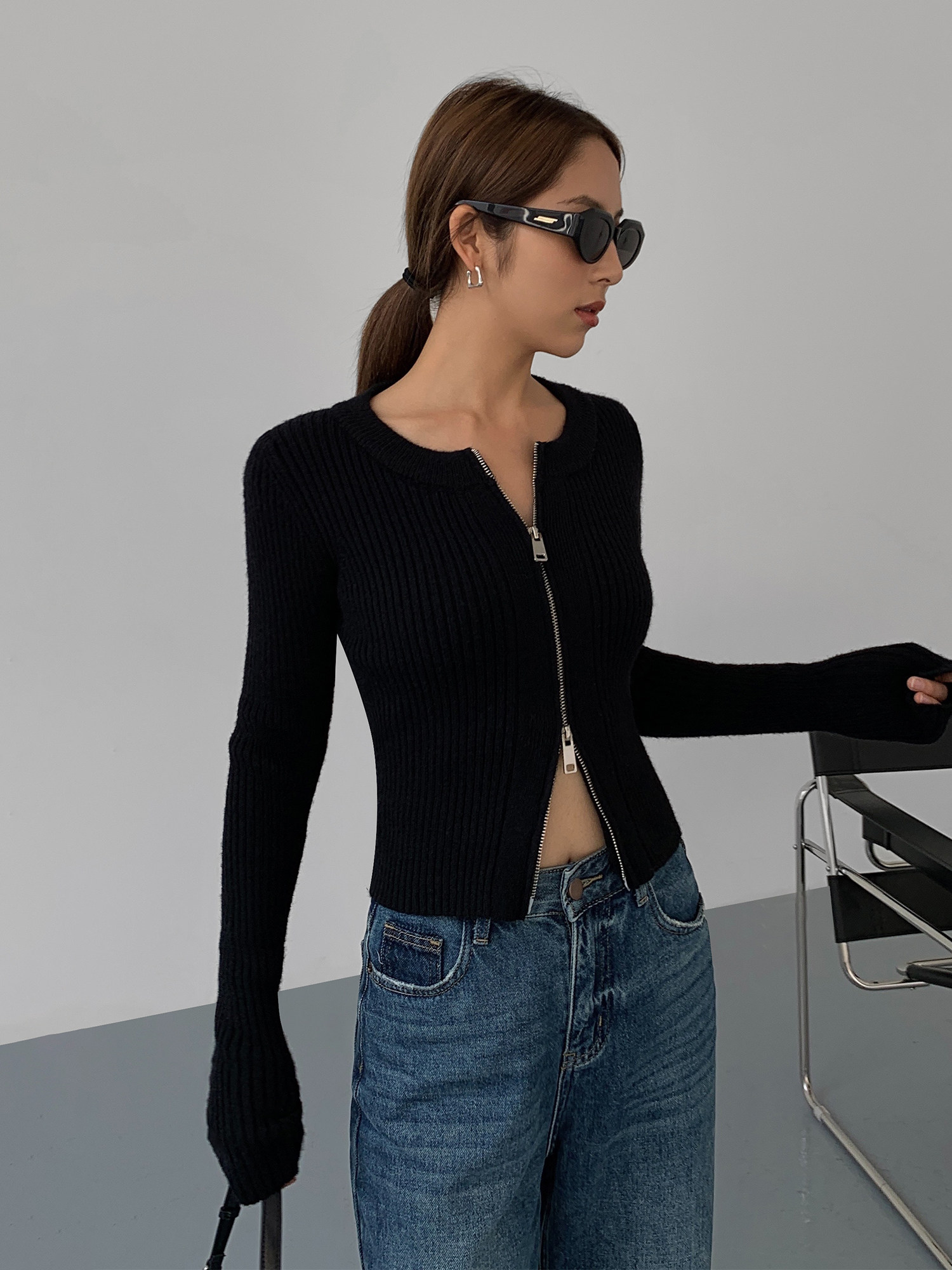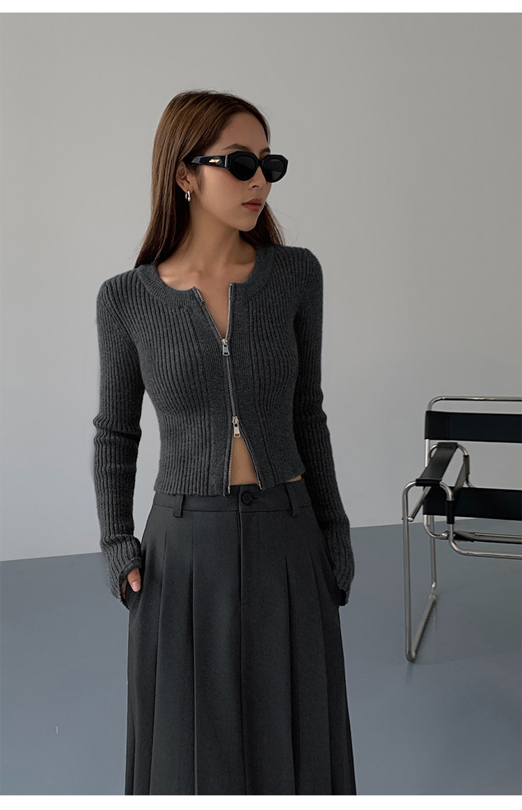 Черный весенний кардиган с молнией, короткий лонгслив, 2023, в корейском стиле, с рукавом