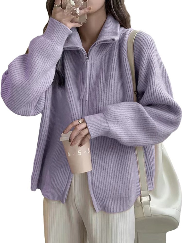 Демисезонный сиреневый кардиган с молнией, утепленный свитер, демисезонная куртка
