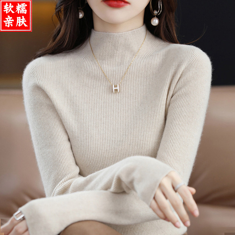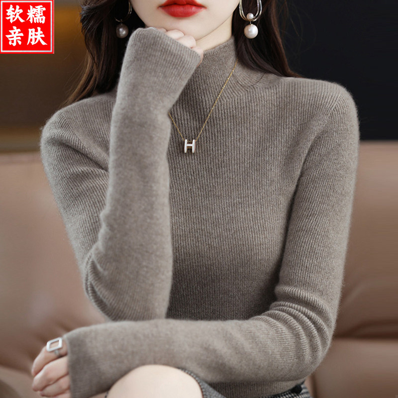 Кашемировый демисезонный цветной шерстяной базовый свитер, высокий воротник, облегающий крой, изысканный стиль