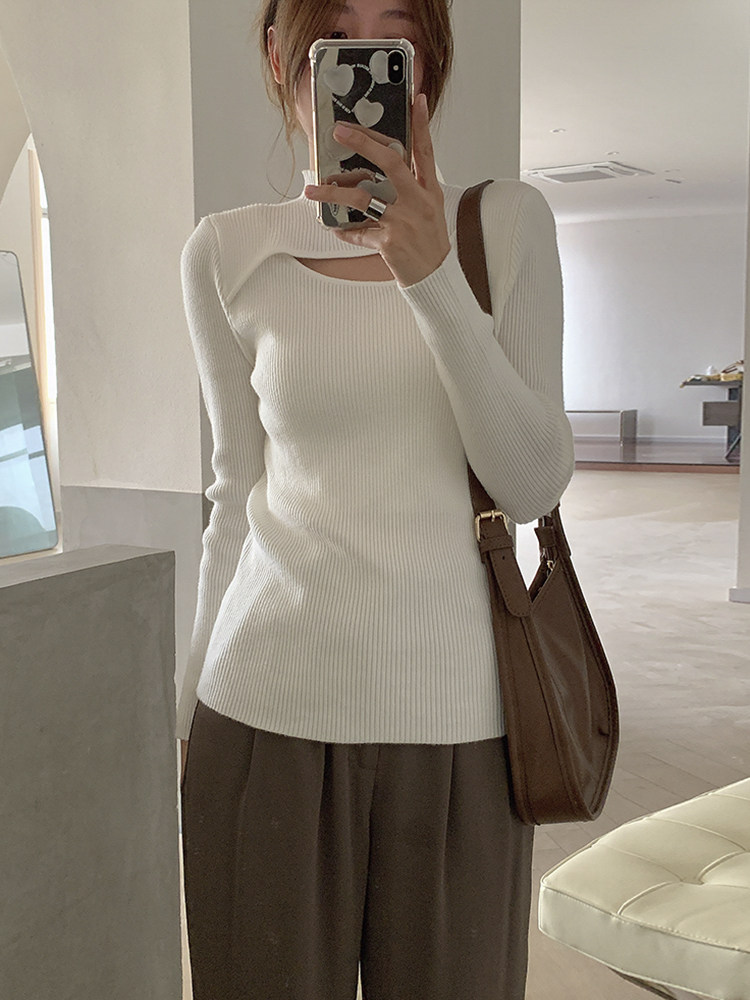 Дизайнерский приталенный трикотажный белый свитер, лонгслив, тренд сезона
