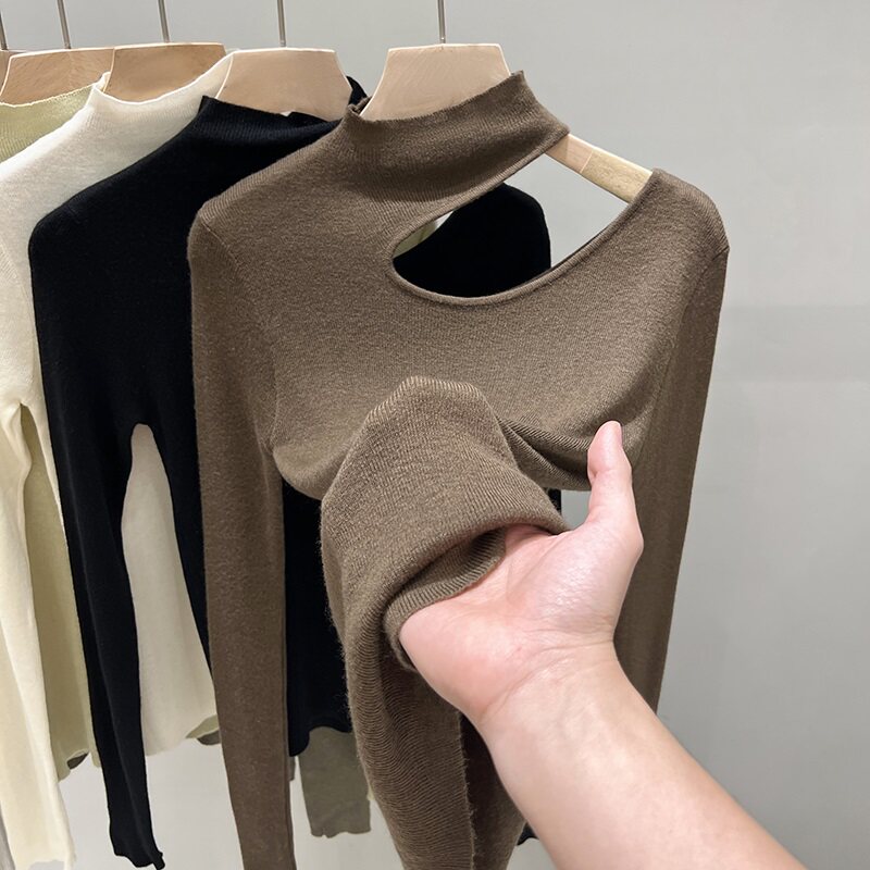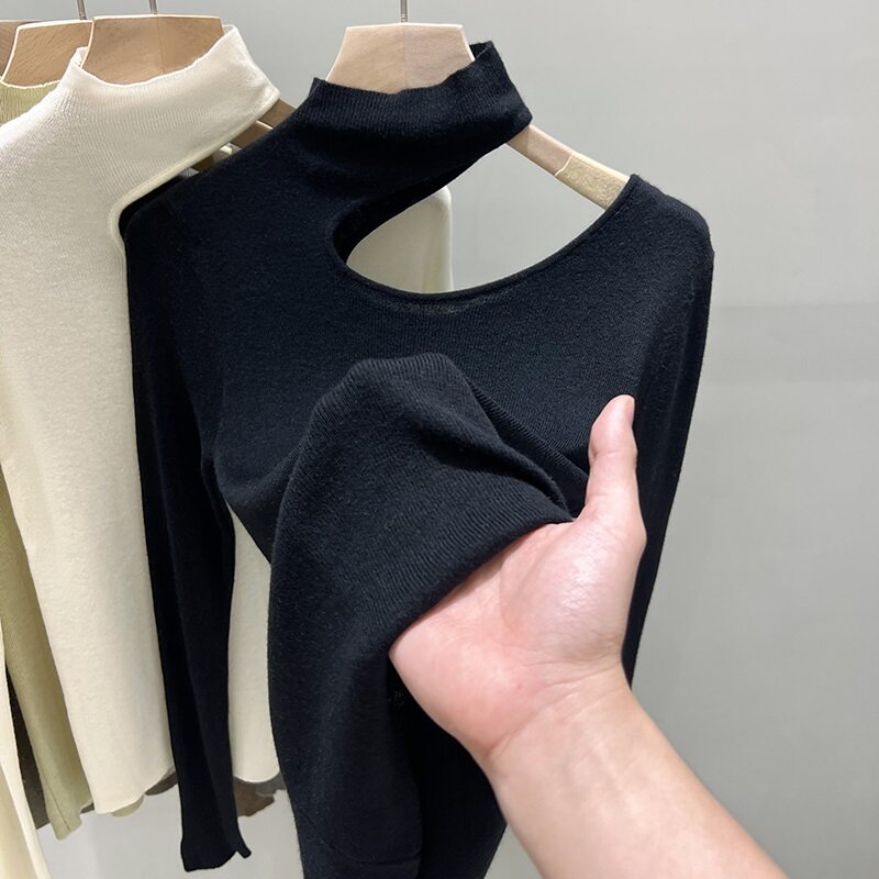 Базовый приятный телу демисезонный трикотажный свитер, высокий воротник, изысканный стиль, французский стиль