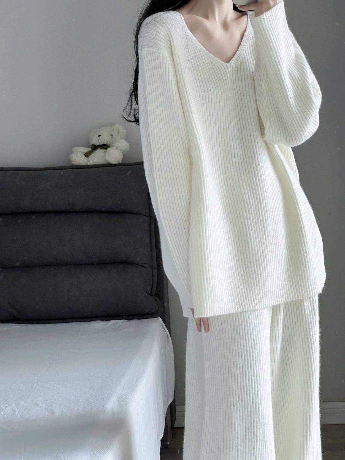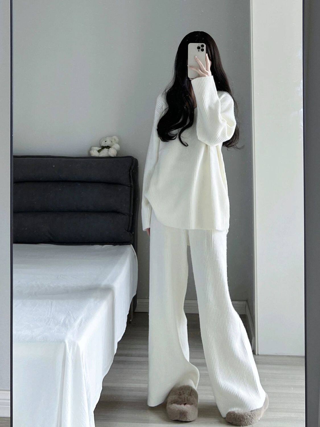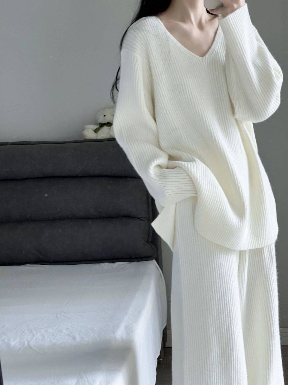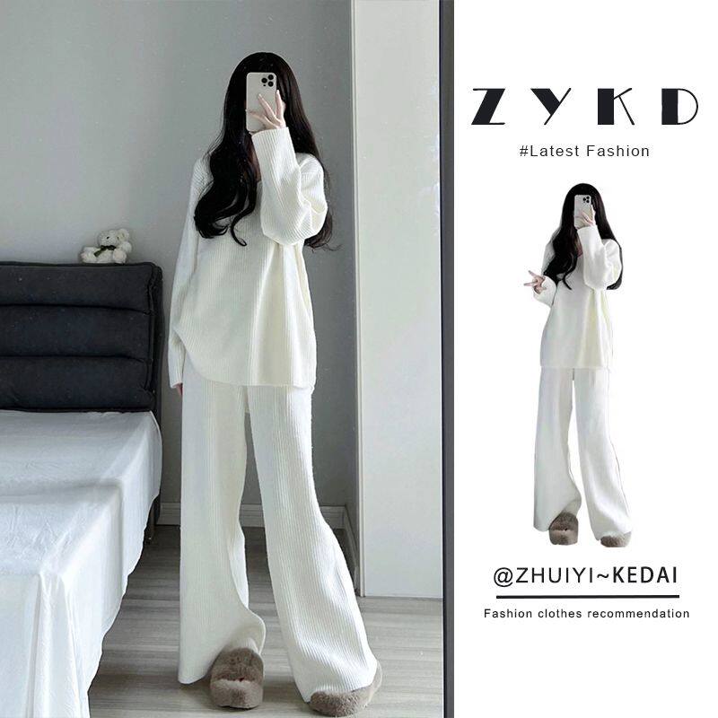 Трикотажный белый брендовый демисезонный свитер, средней длины, оверсайз, в корейском стиле