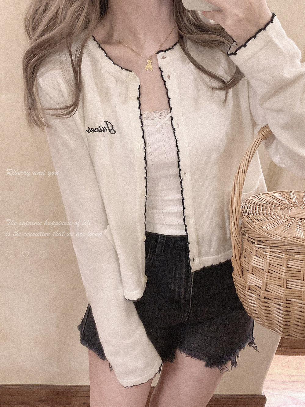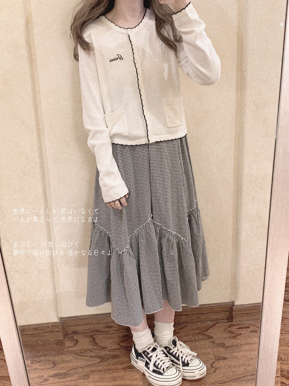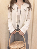 Шерстяной японский лонгслив в форме цветка, белый кардиган, с вышивкой
