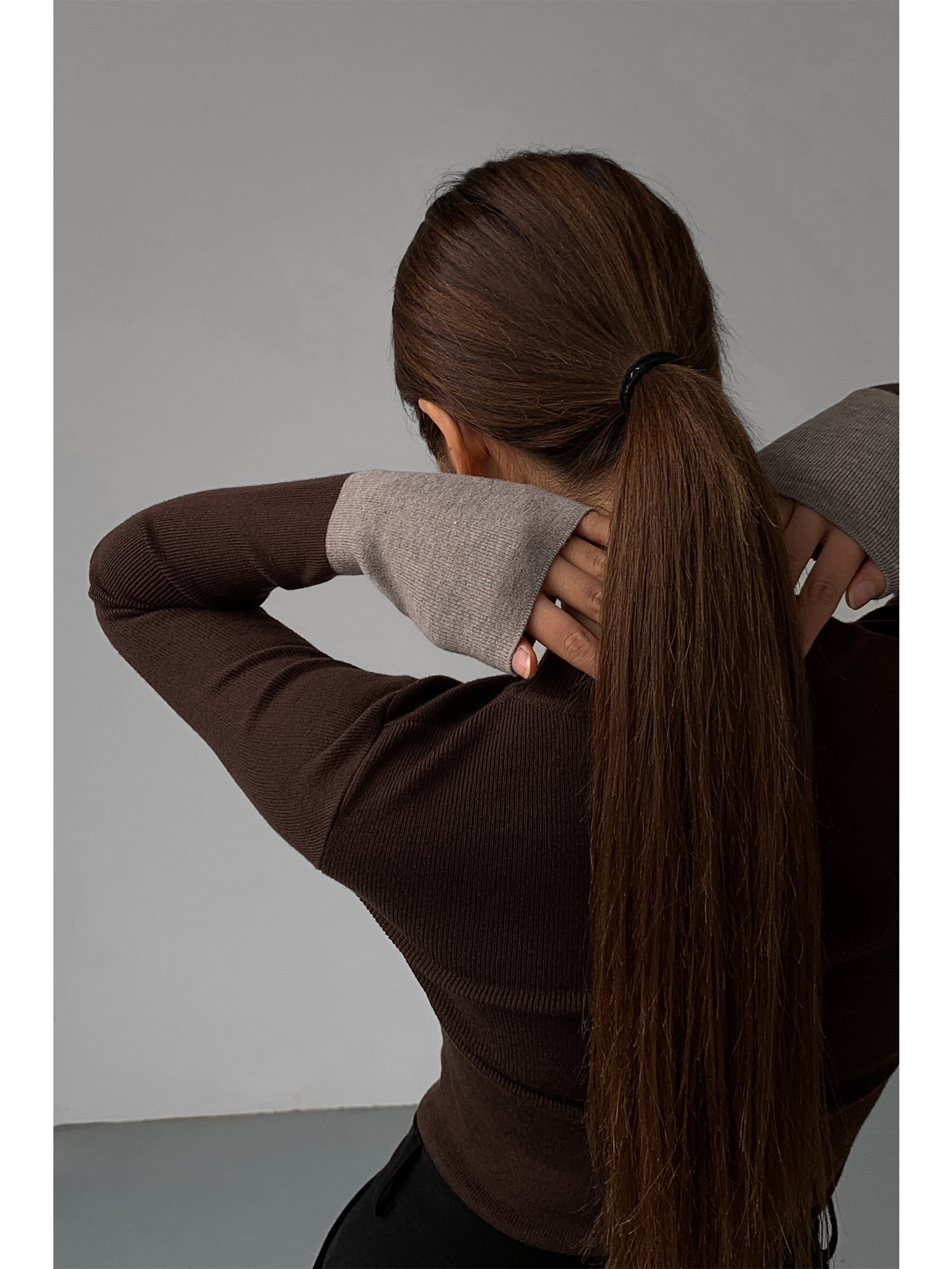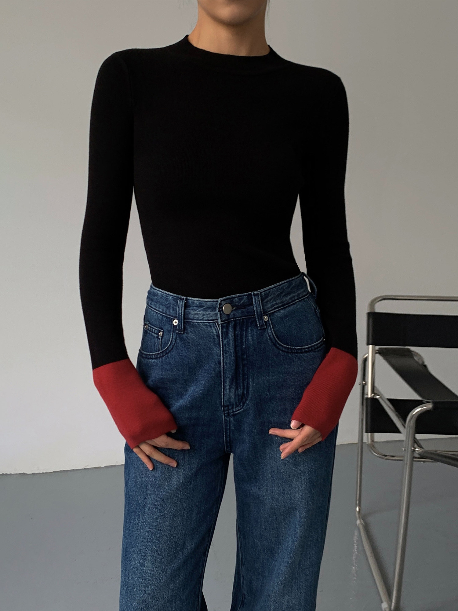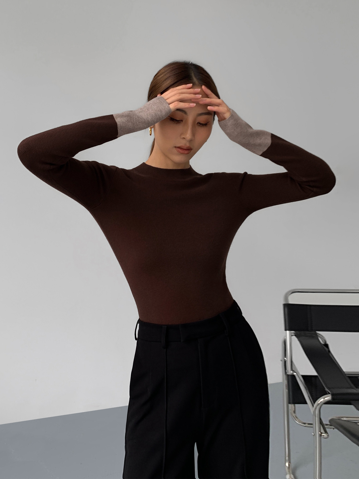 Нева Ху, блокирующая цветовая половина, вязаная базовая рубашка для женщин 2023 Весной дизайн ниша.