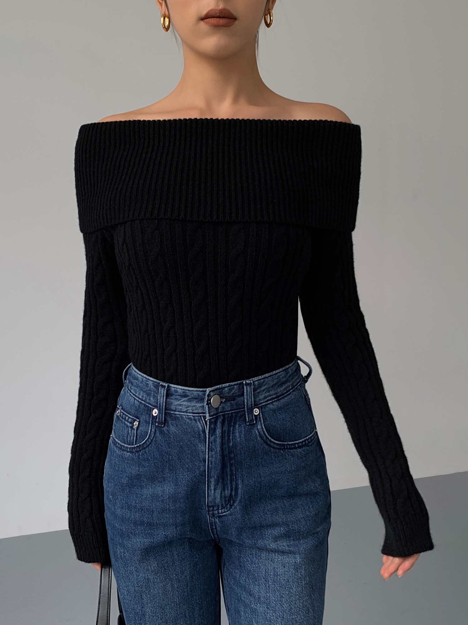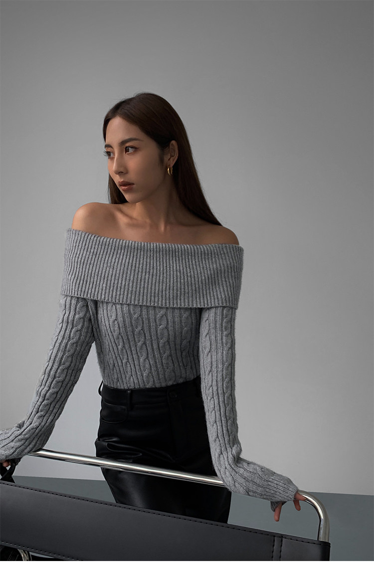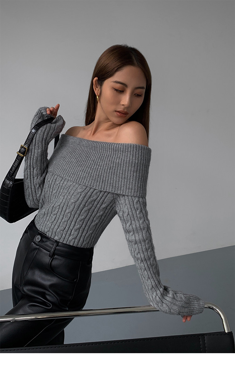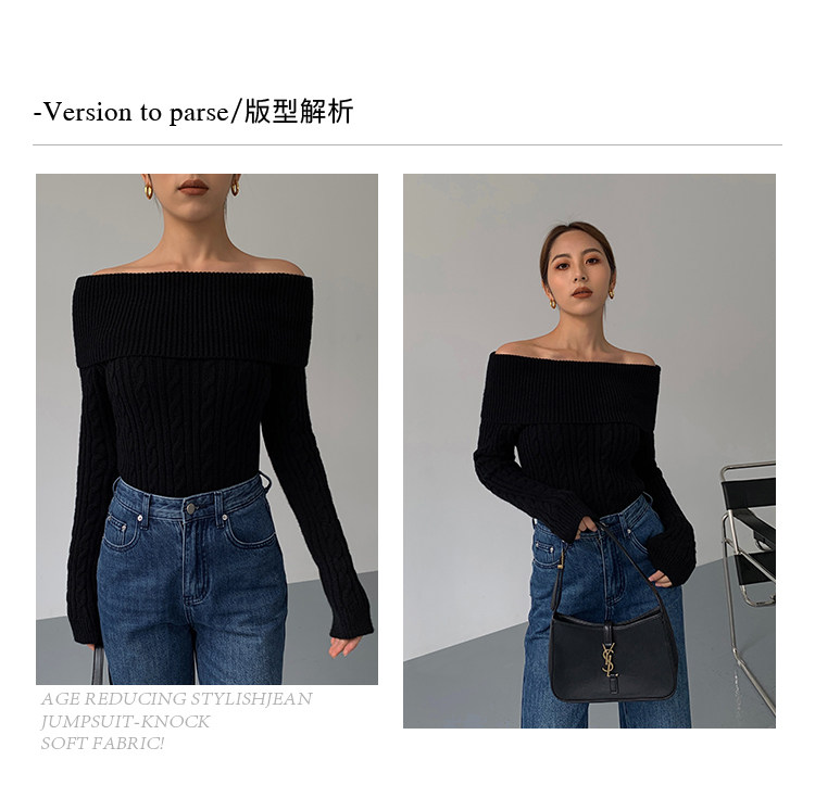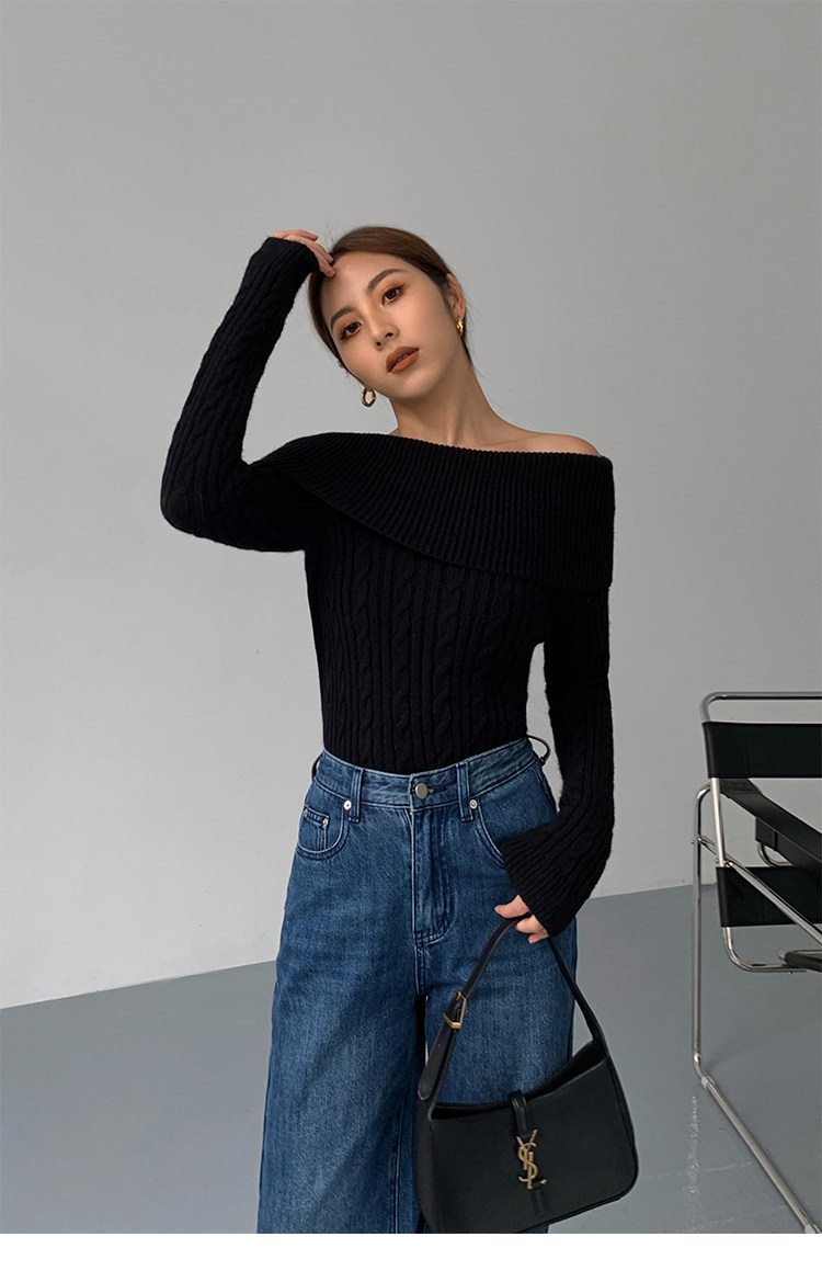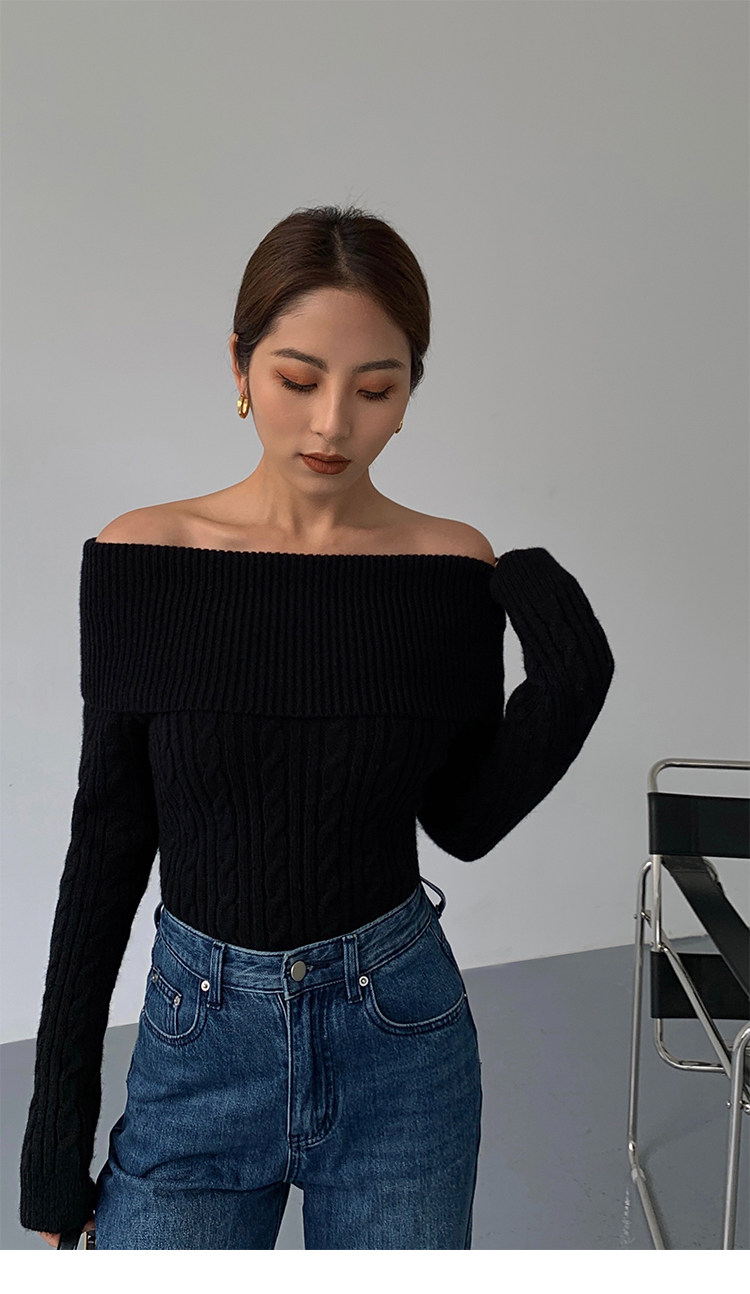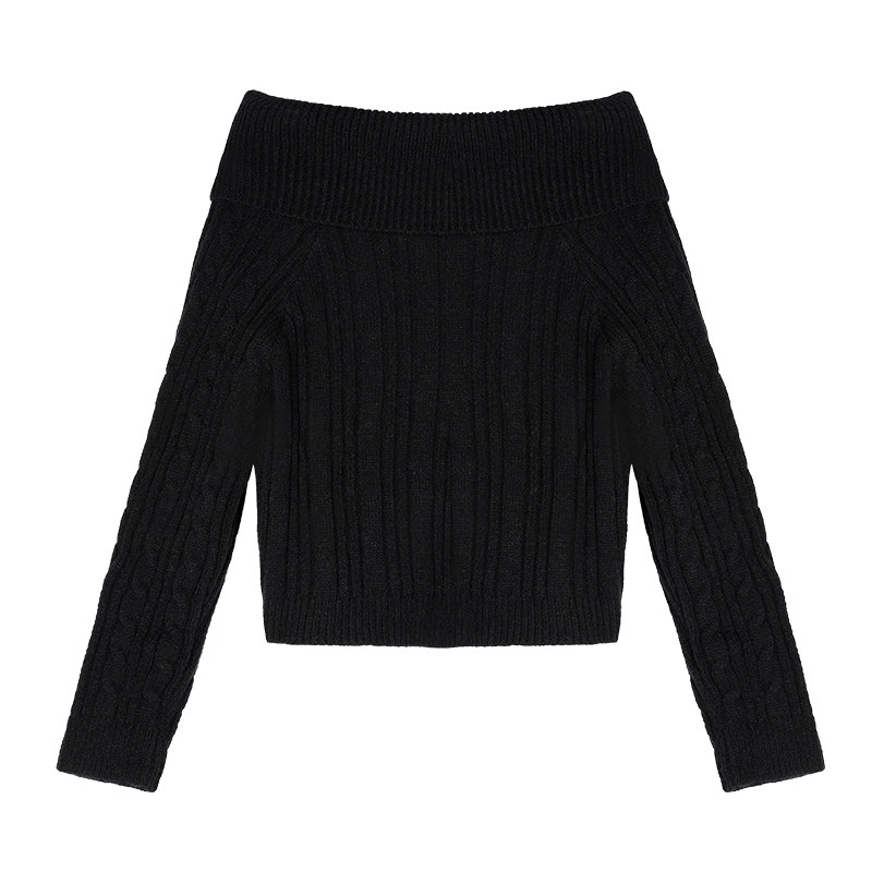 Черный трикотажный весенний свитер, открытые плечи, 2023, изысканный стиль, облегающий крой