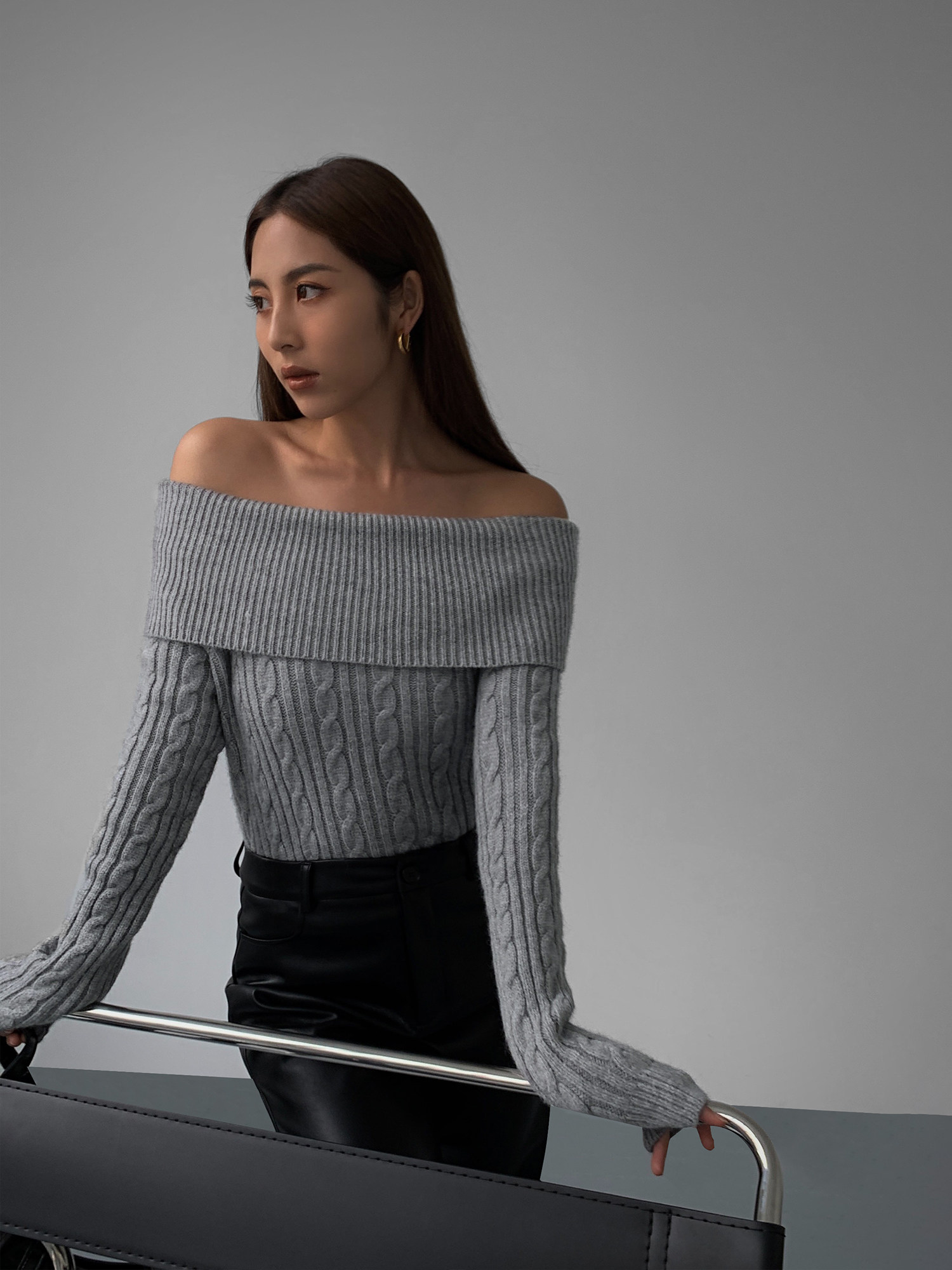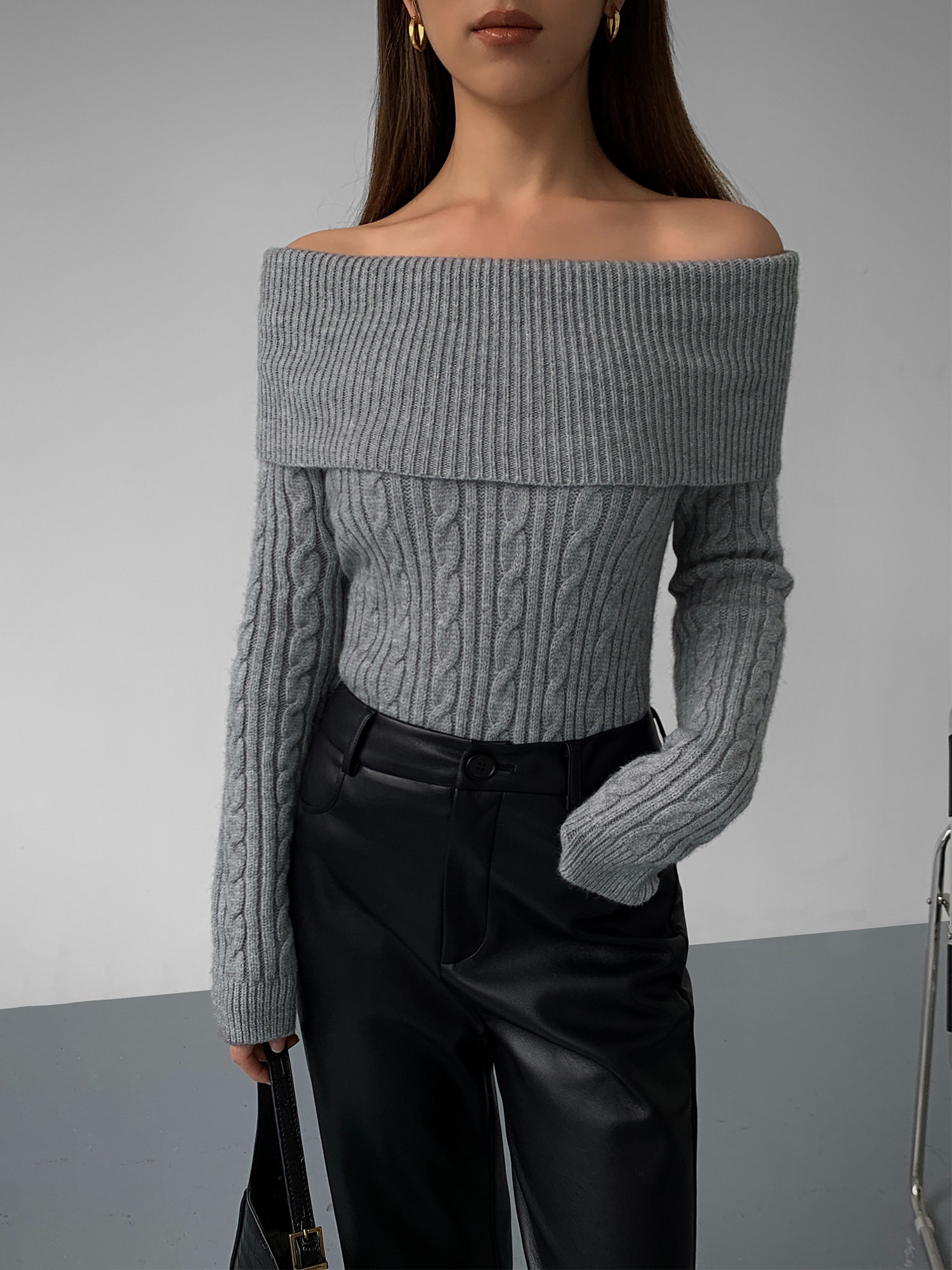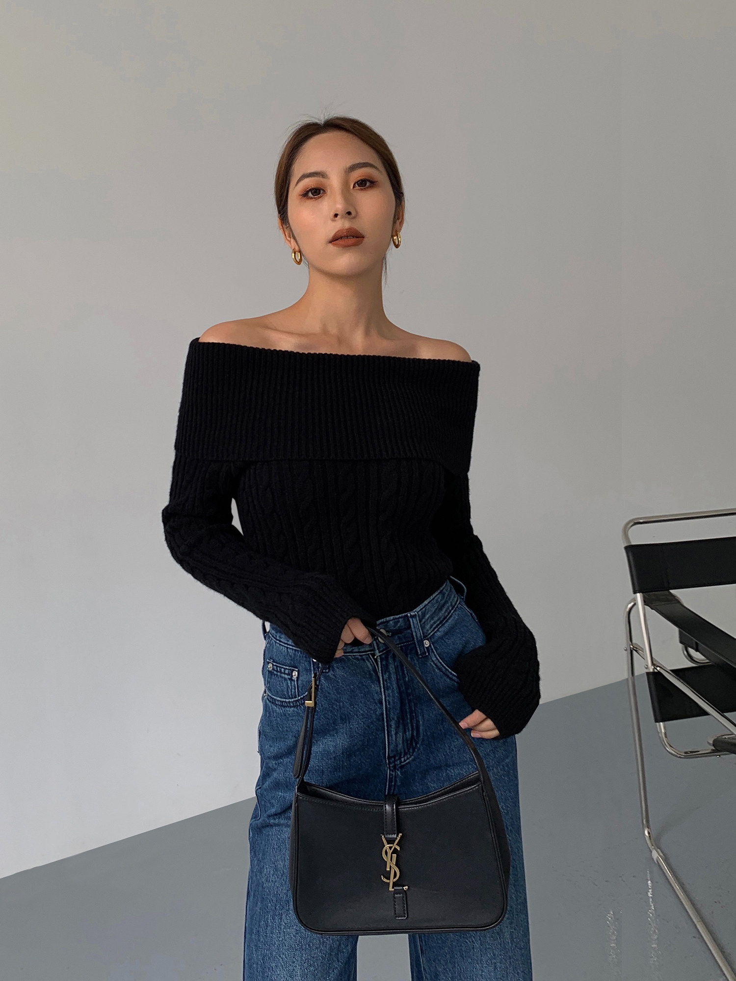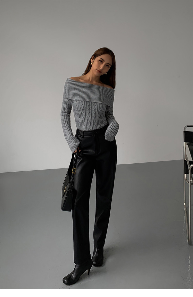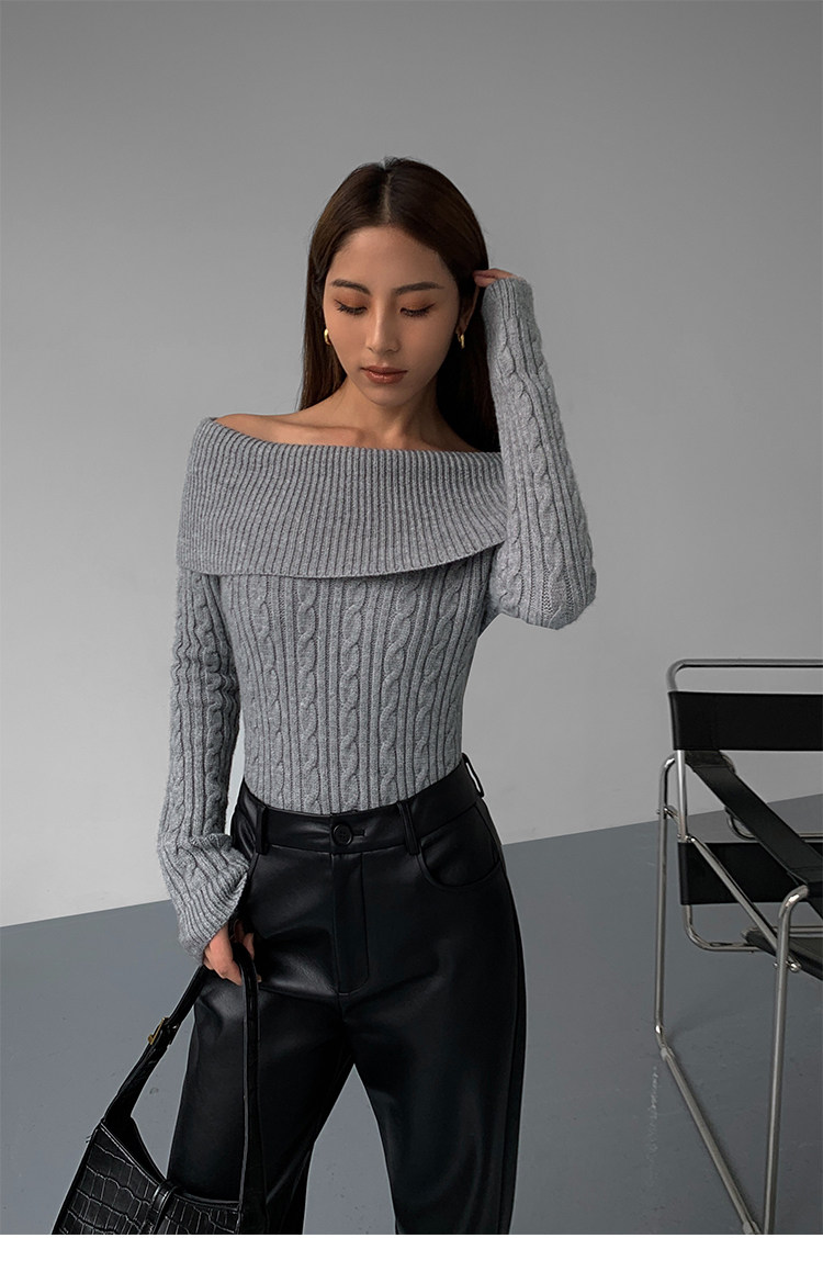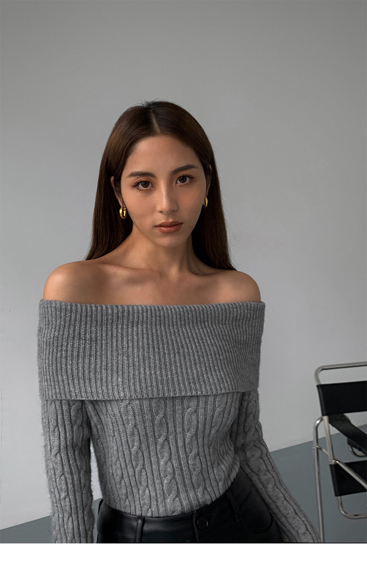 Черный трикотажный весенний свитер, открытые плечи, 2023, изысканный стиль, облегающий крой