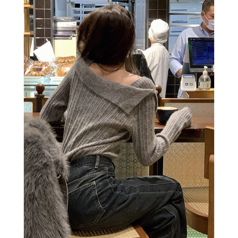 Свитер, демисезонное трикотажное дизайнерское базовое термобелье, облегающий крой, открытые плечи, тренд сезона, в западном стиле