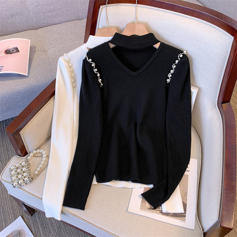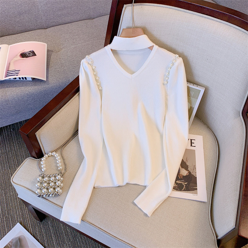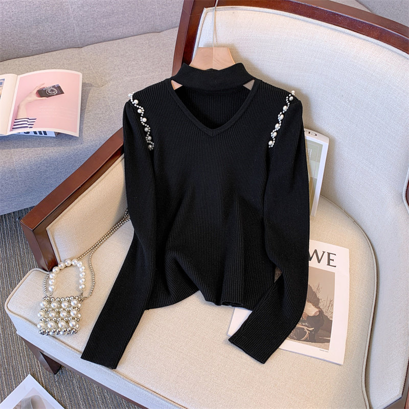 Демисезонный трикотажный базовый приятный телу свитер, рукава фонарики