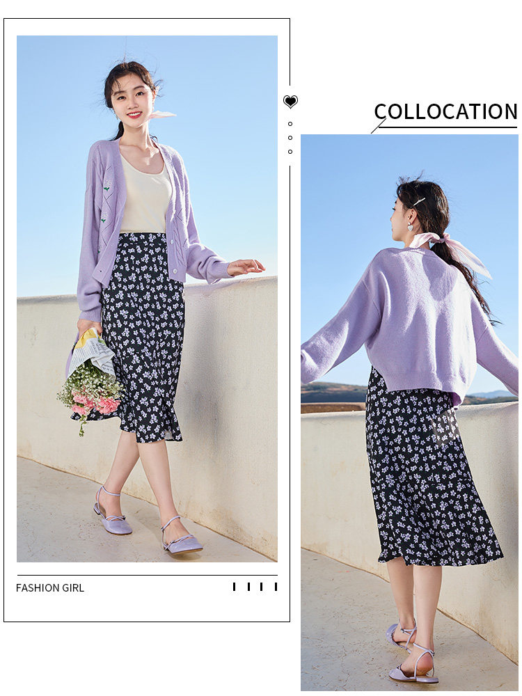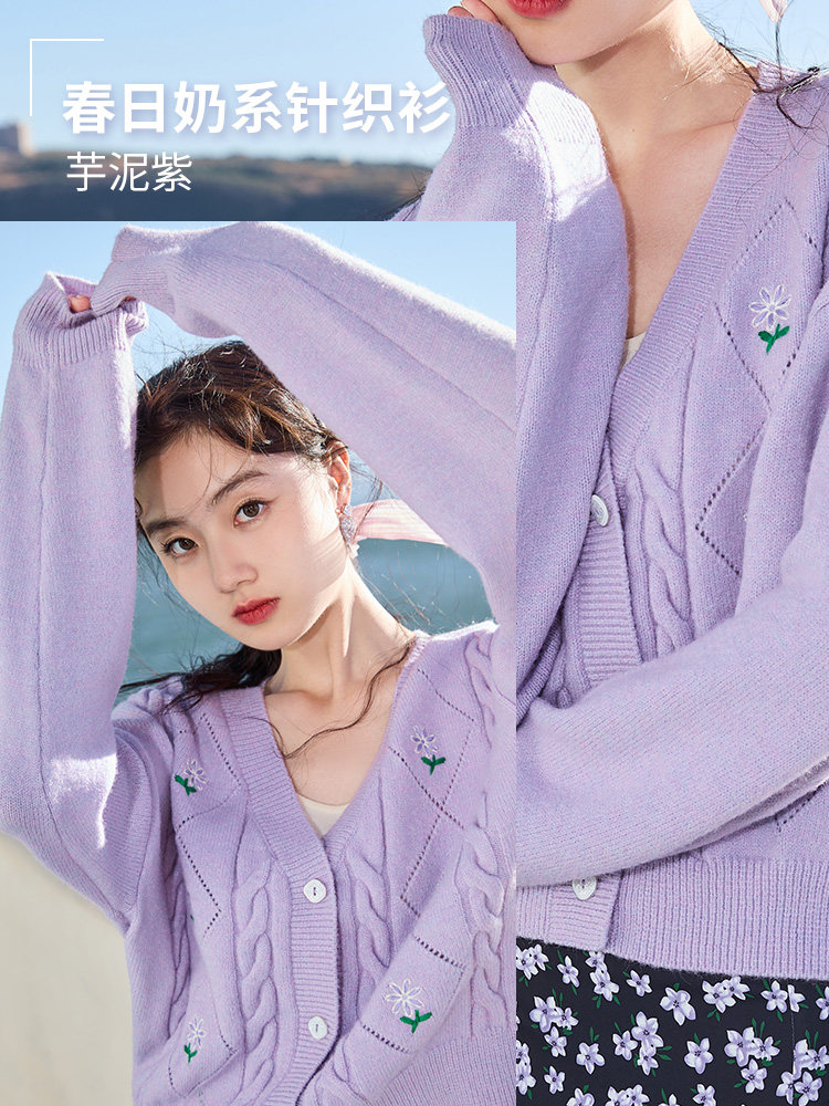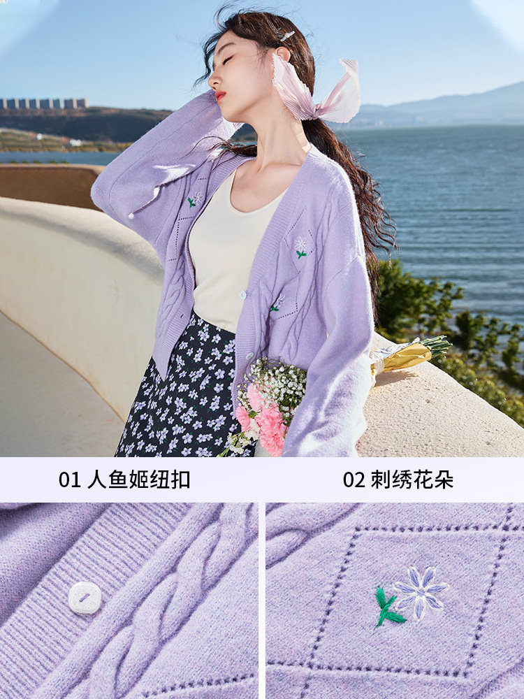 Весенний сиреневый свитер, кардиган, куртка, 2023, цветочный принт, оверсайз