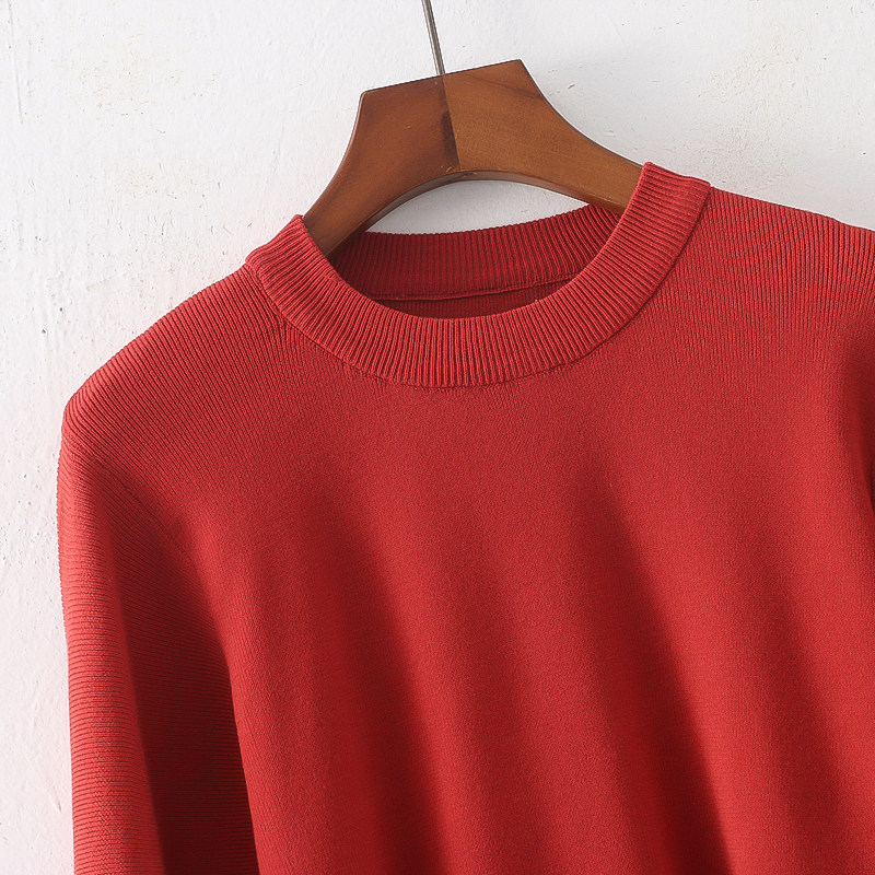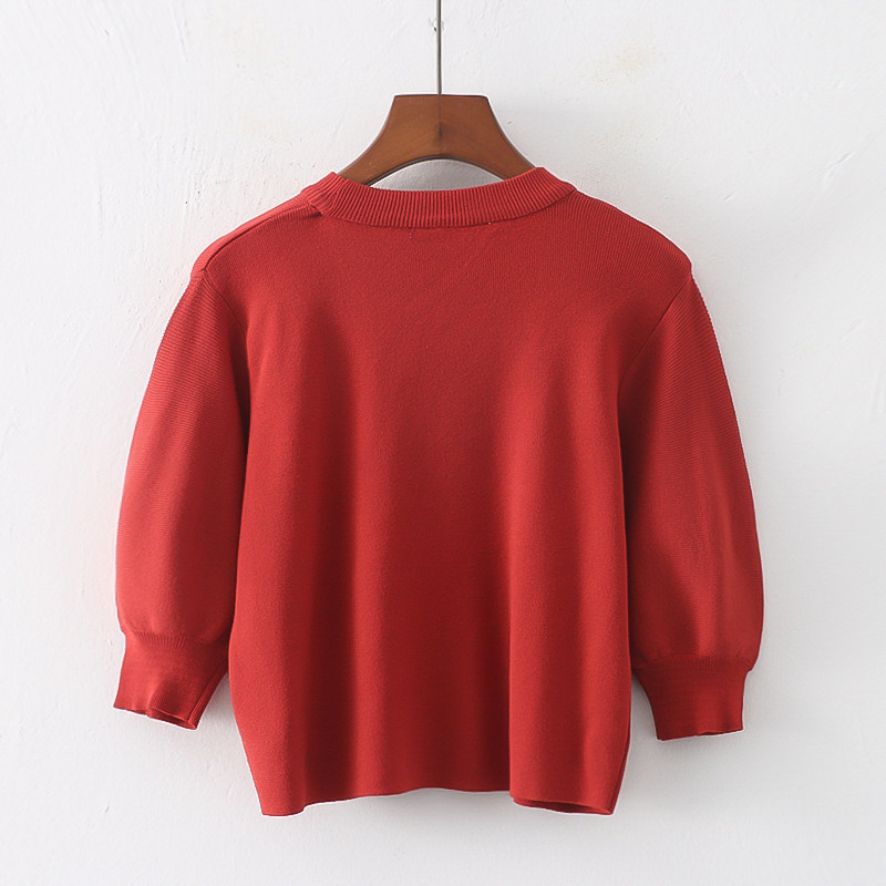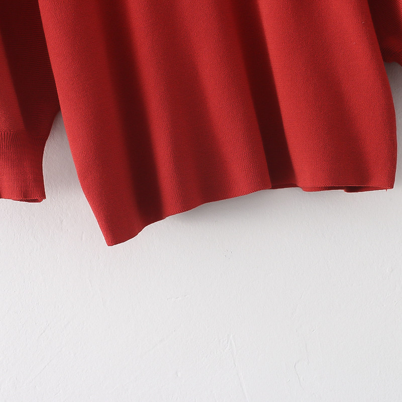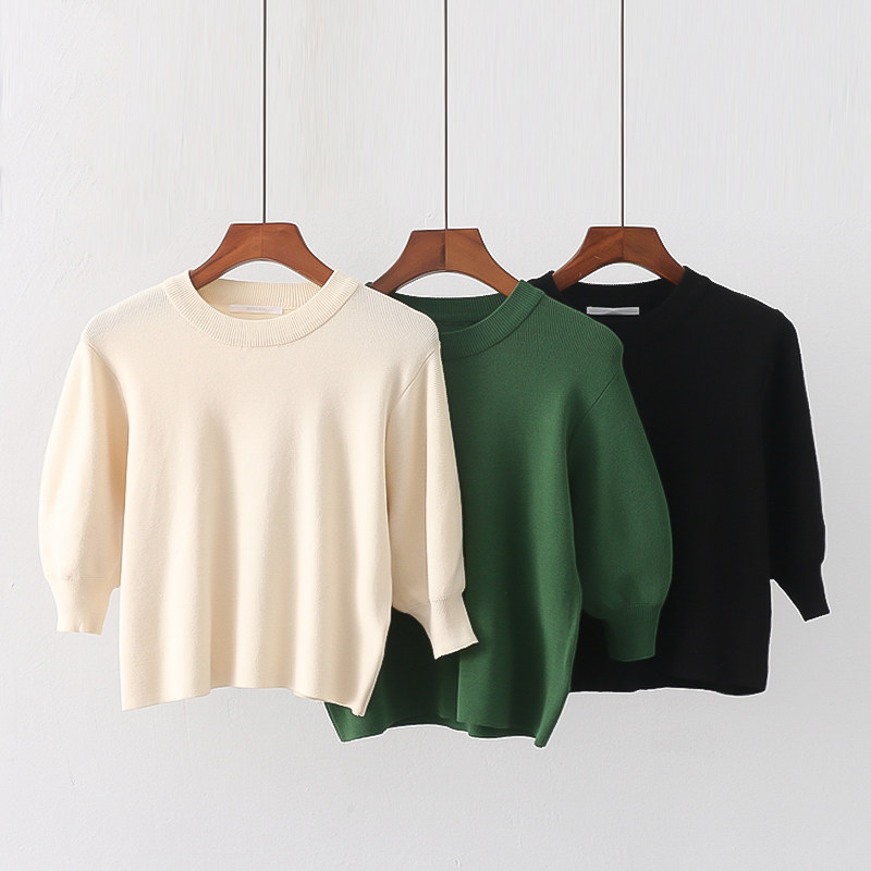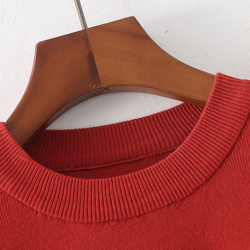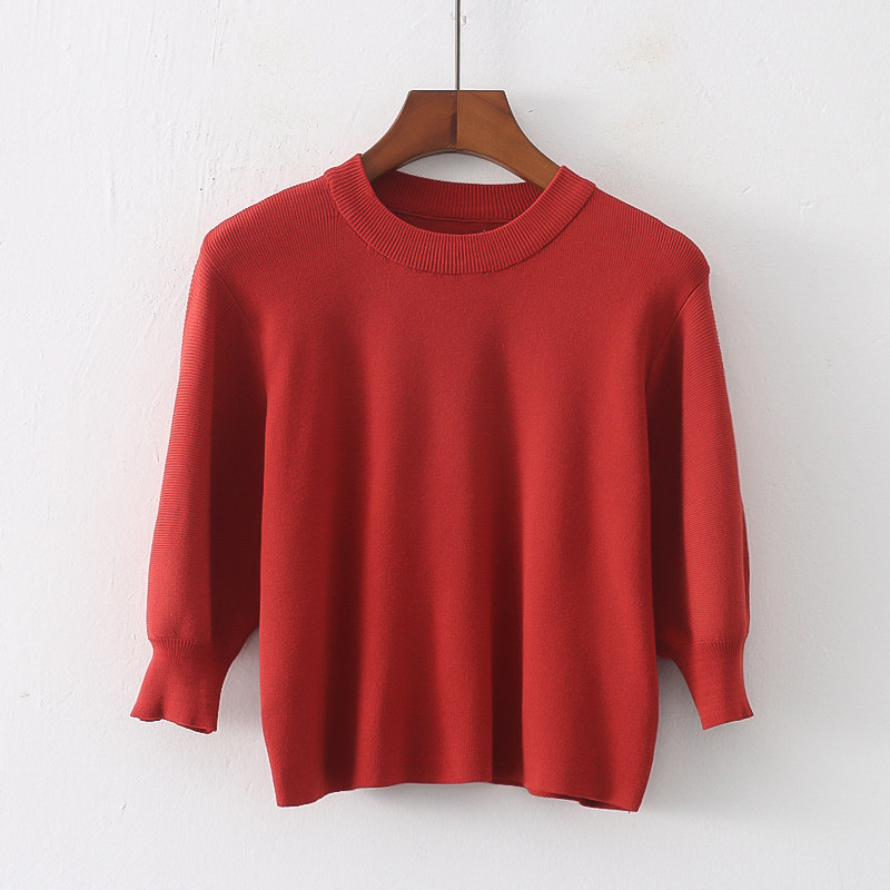 Трикотажный весенний эластичный модный короткий свитер с круглым воротником, короткий рукав, облегающий крой