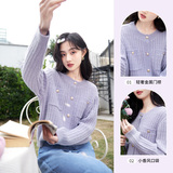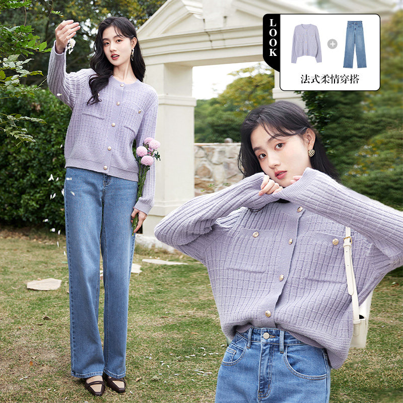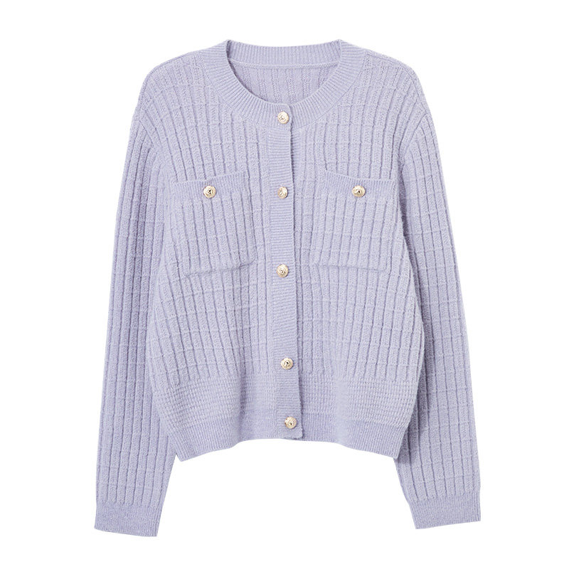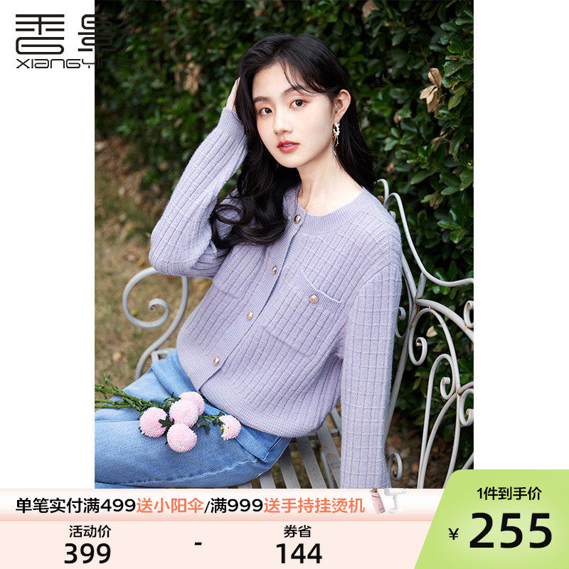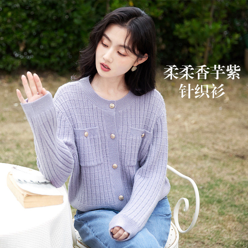 香影 Осенний сиреневый трикотажный свитер, кардиган, 2023, французский стиль, в стиле Шанель