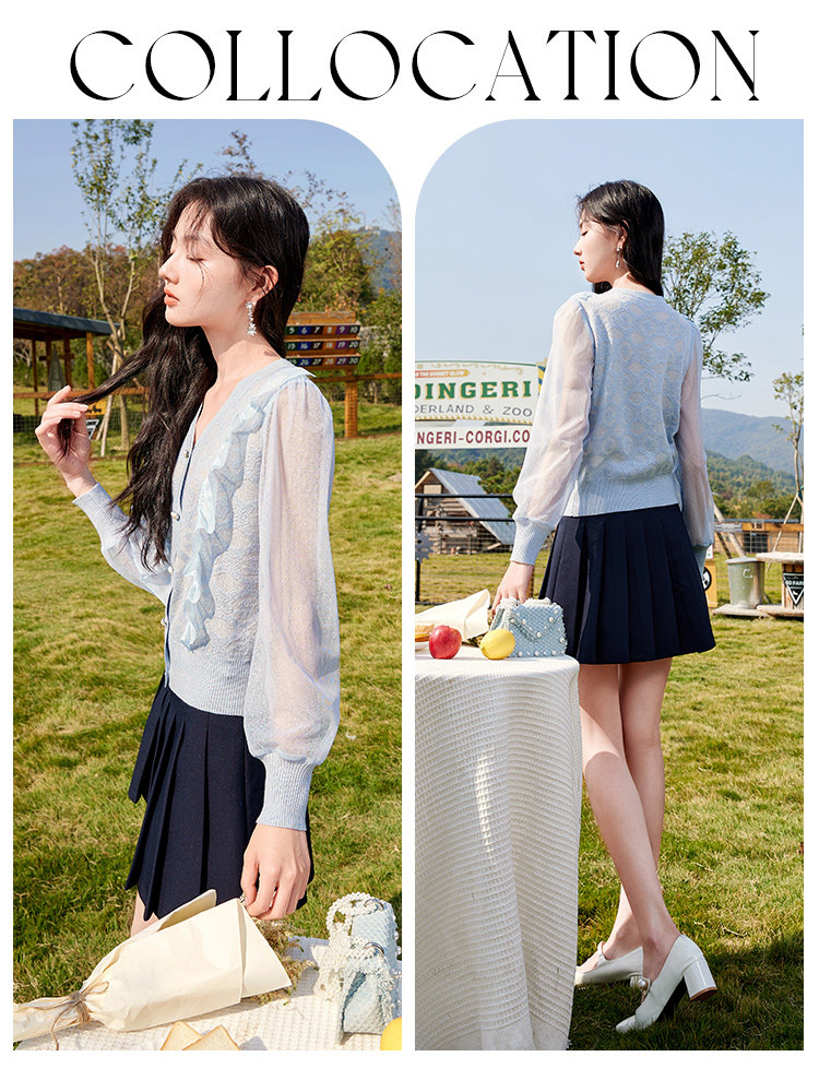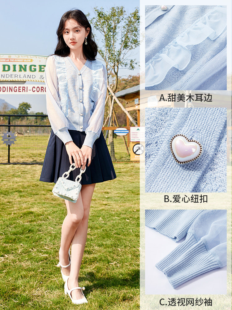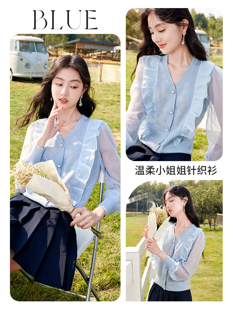 Весенний синий модный свитер, кардиган, 2023, V-образный вырез, в западном стиле
