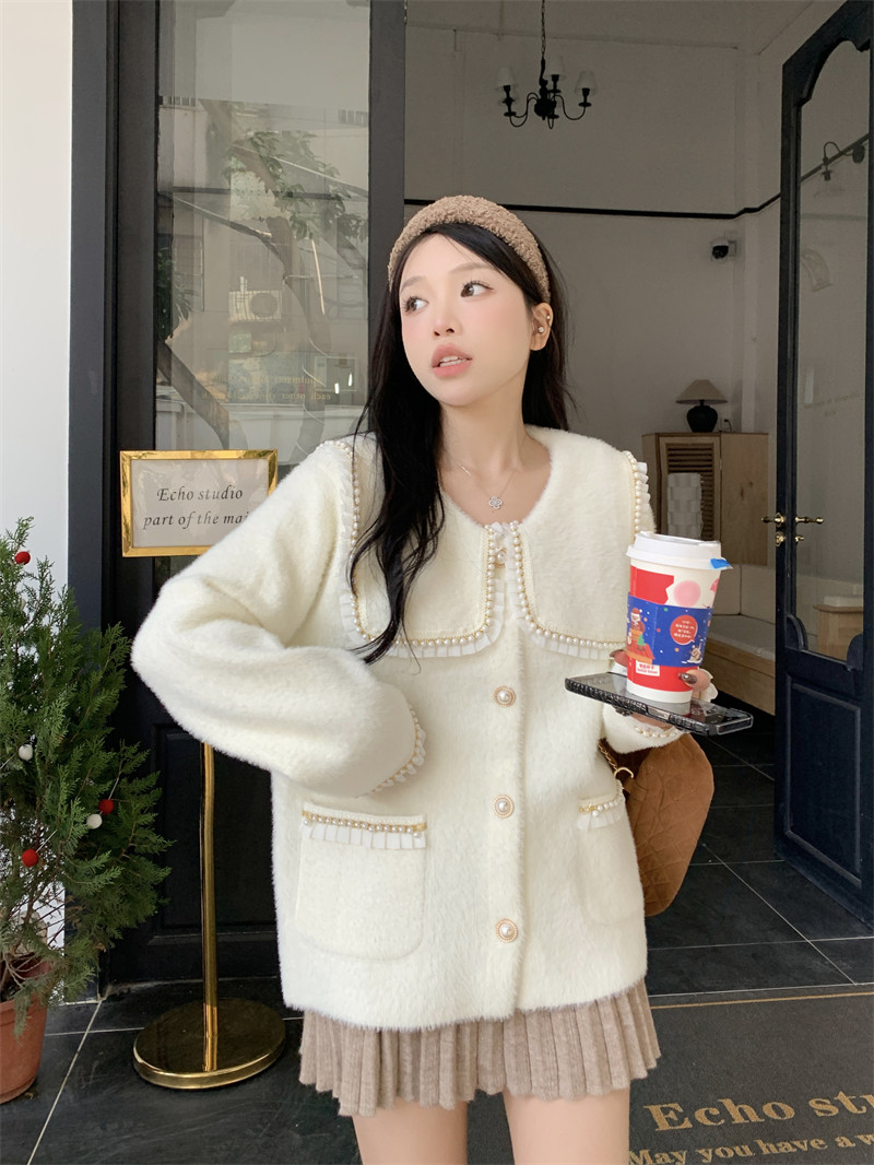 Военно-морская белая куртка, бархатный трикотажный свитер, французский стиль