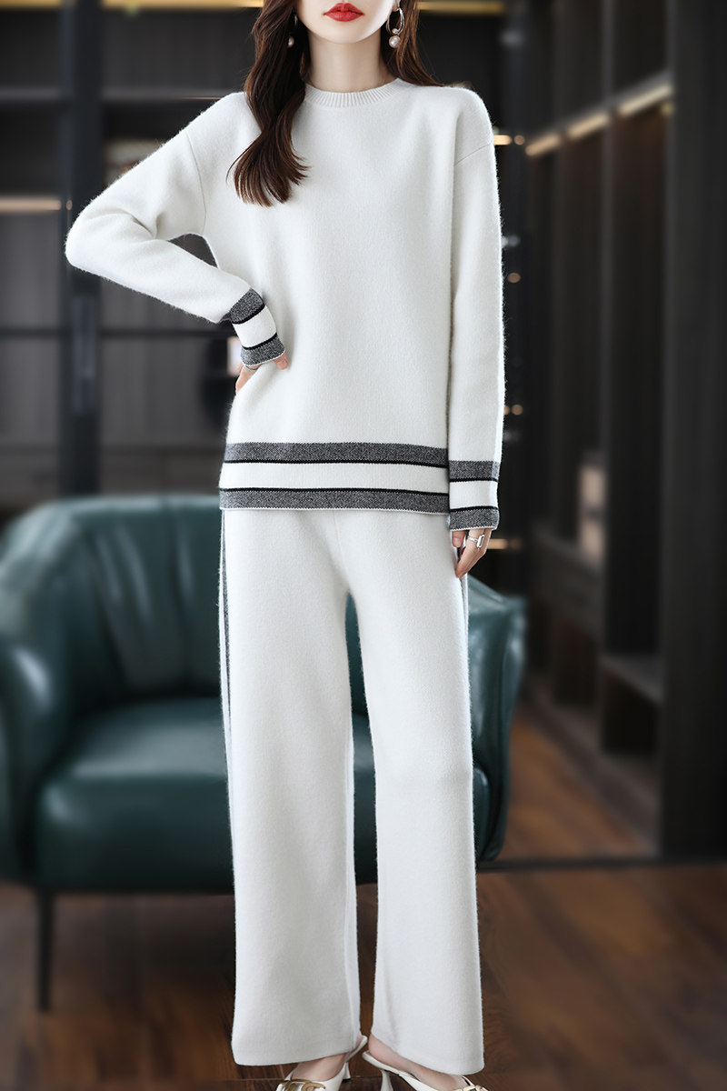 Шерстяной трикотажный свитер, элитный кашемировый комплект, коллекция 2023, в западном стиле