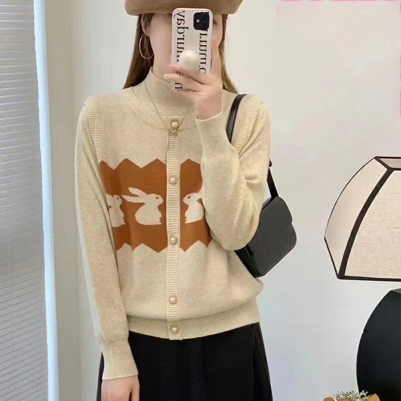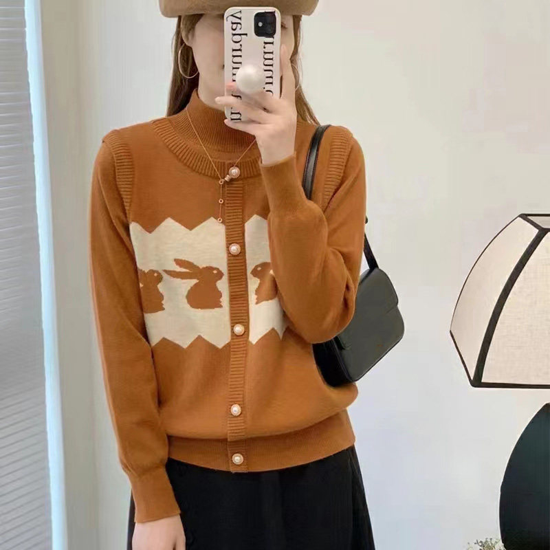 Оберег на день рождения, кашемировый кролик, утепленный лонгслив, трикотажный свитер, яркий броский стиль, свободный крой, высокий воротник