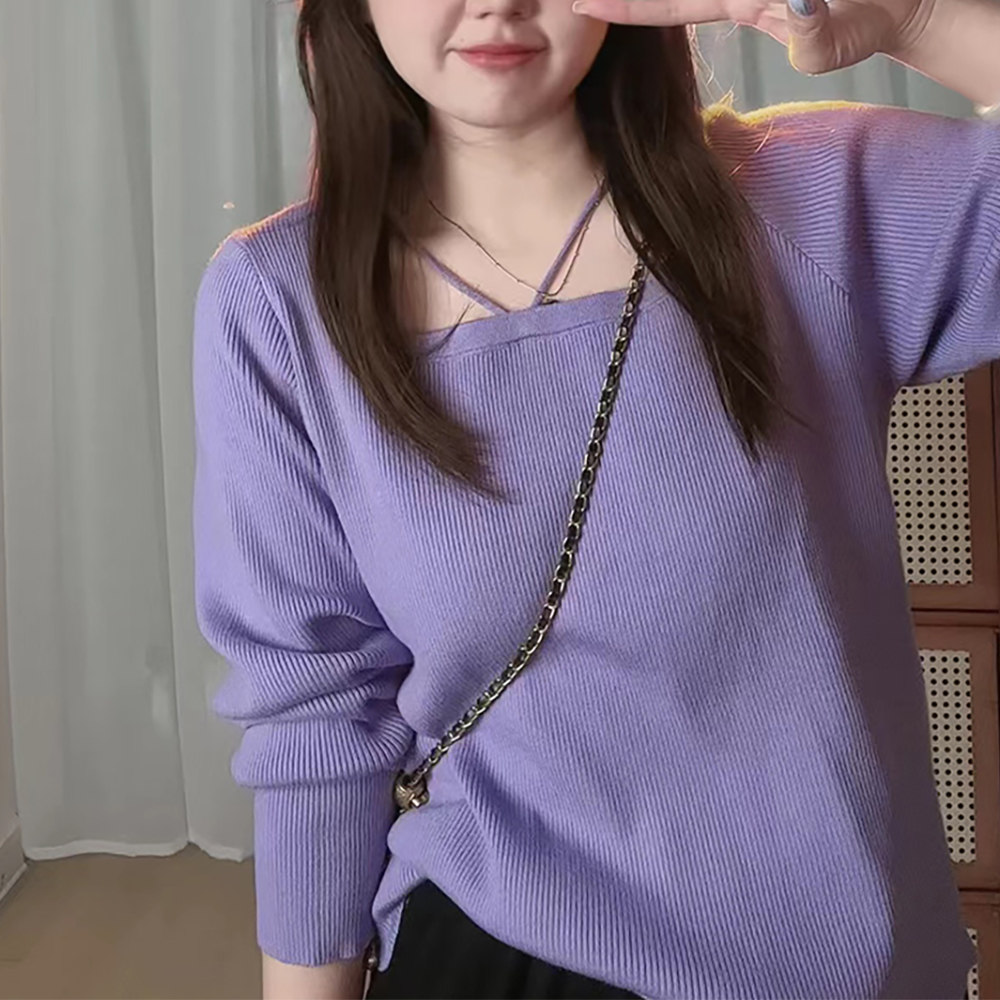 Трикотажный сиреневый весенний свитер, большой размер, квадратный вырез