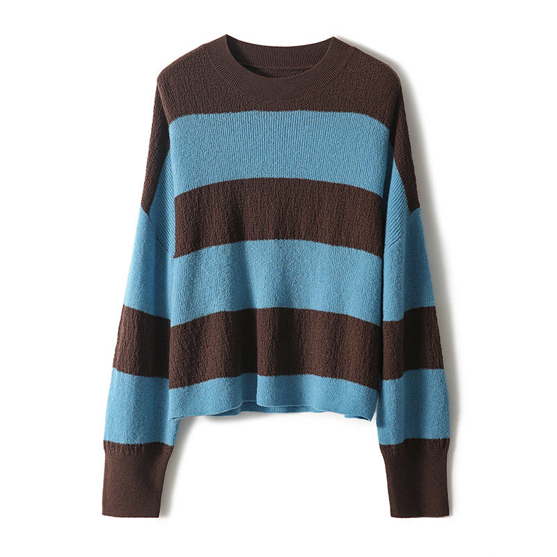 の [ZYB565146VG] Контрастный свитер с полосатым блоггером/шерсть Кансени, вязаная куртка кашемирового силуэта