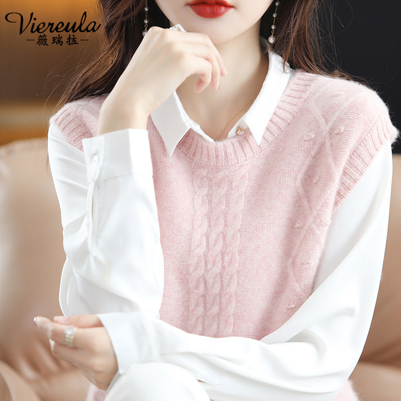 Жилет, майка топ, осенний трикотажный свитер, 2023, V-образный вырез, свободный крой