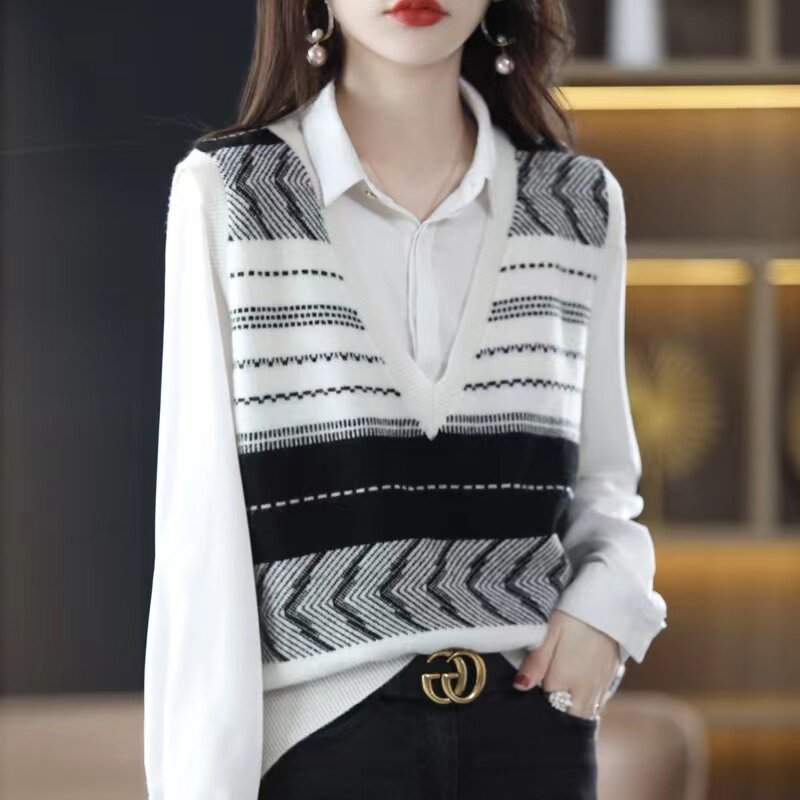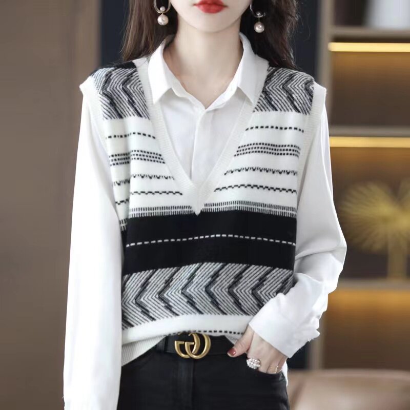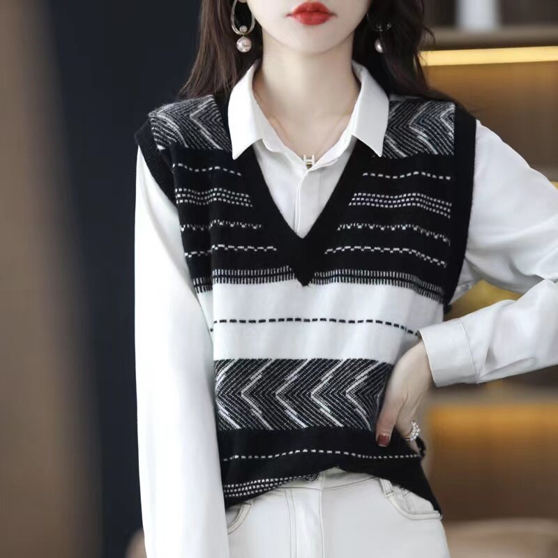 Трикотажный весенний демисезонный осенний жилет, свитер, коллекция 2023, оверсайз