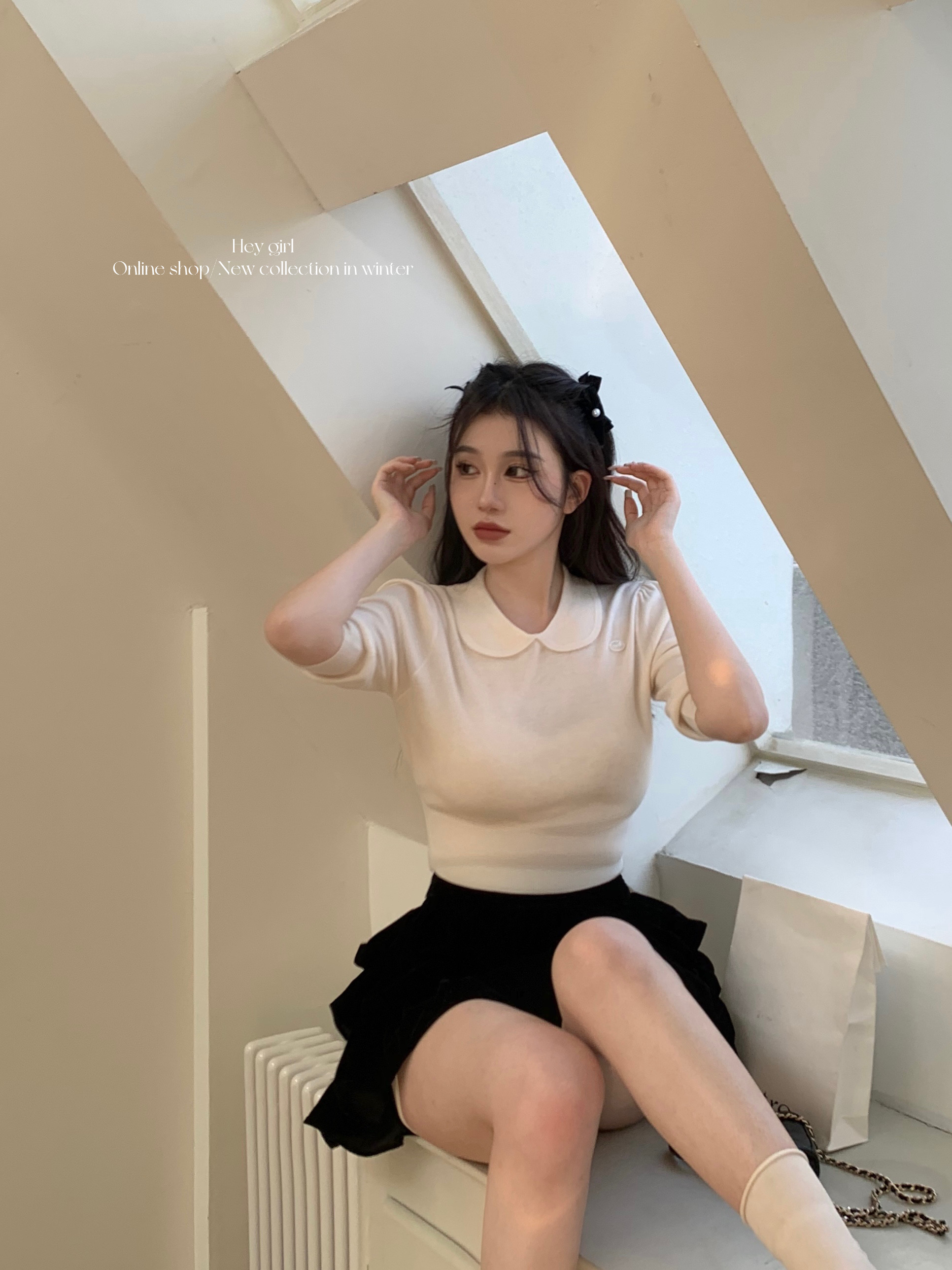 Короткая базовая кашемировая мягкая кукла, кукольный воротник, высокий воротник, короткий рукав, коллекция 2023