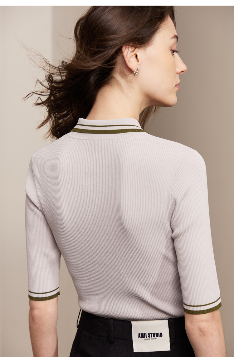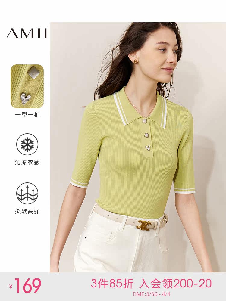 Amii Весенняя приталенная футболка polo, трикотажный свитер, 2023