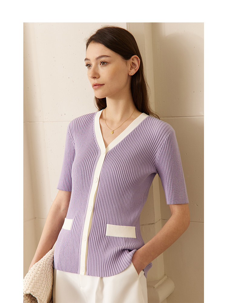 Весенний элегантный ретро трикотажный приталенный кардиган, футболка, 2023, V-образный вырез, короткий рукав