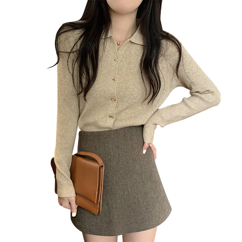 Трикотажный весенний свитер, воротник поло, французский стиль, коллекция 2023