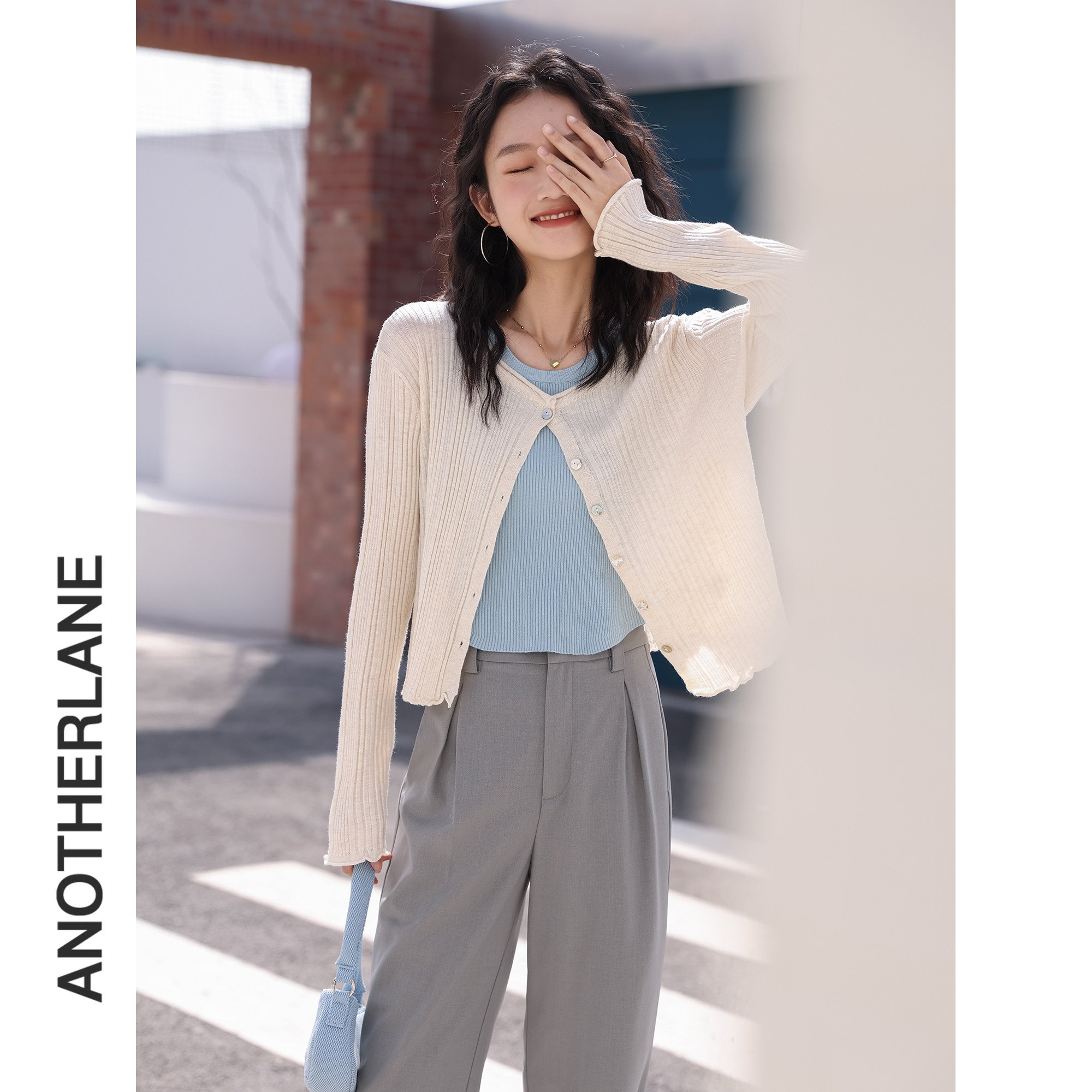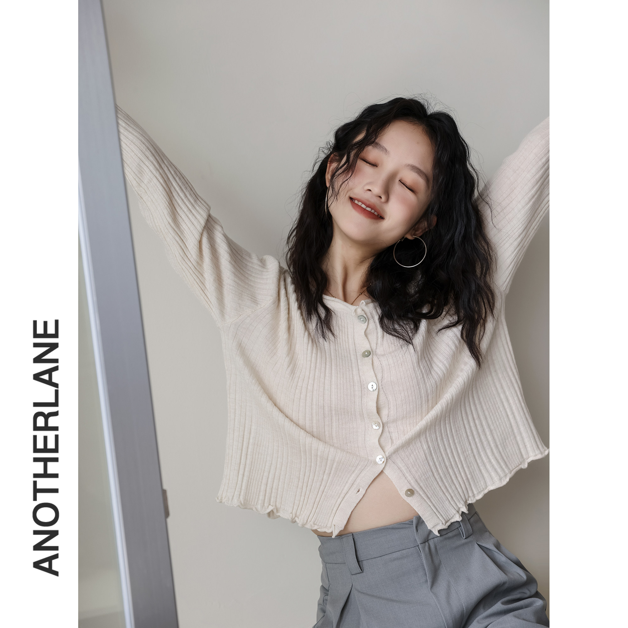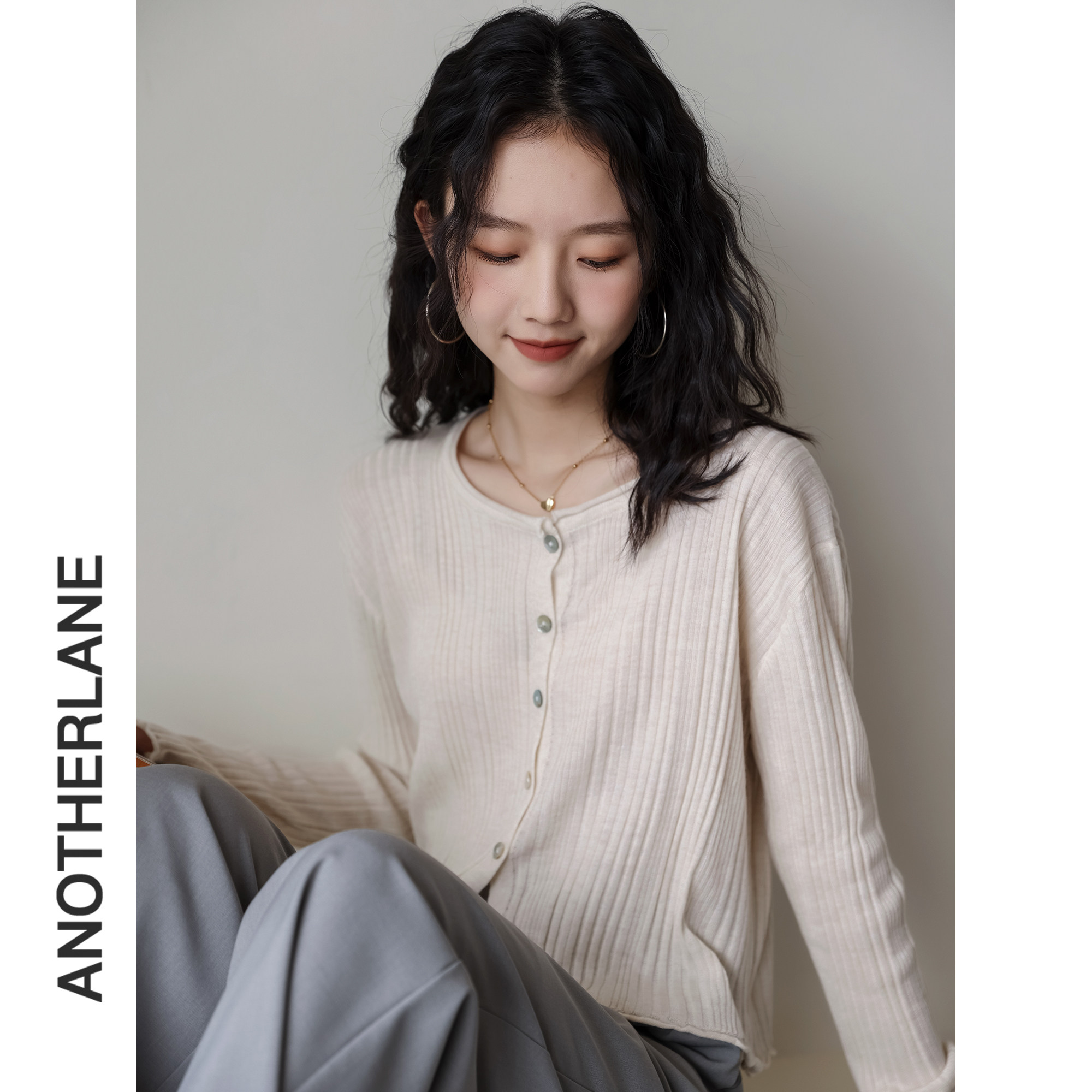Весенний кардиган с круглым воротником, модный дизайнерский лонгслив, 2023, тренд сезона, в корейском стиле