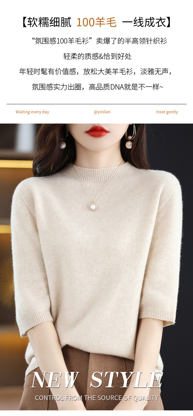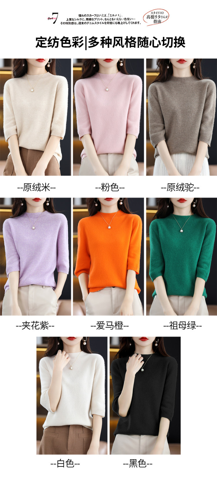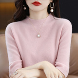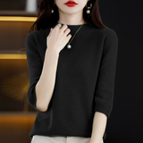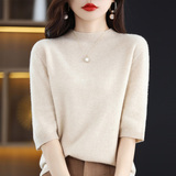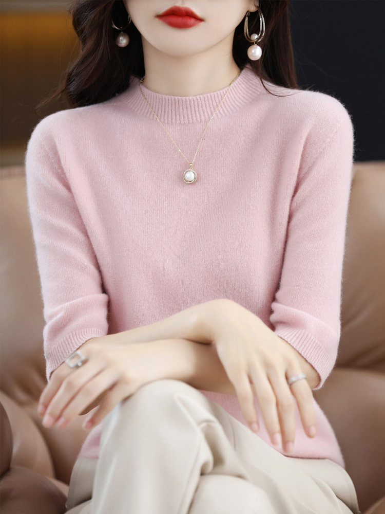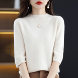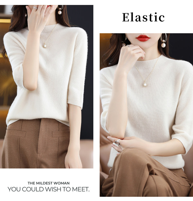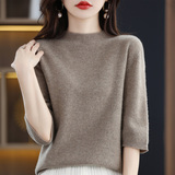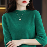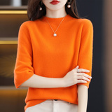 Летний шерстяной трикотажный кашемировый базовый свитер с круглым воротником, с рукавом, в корейском стиле