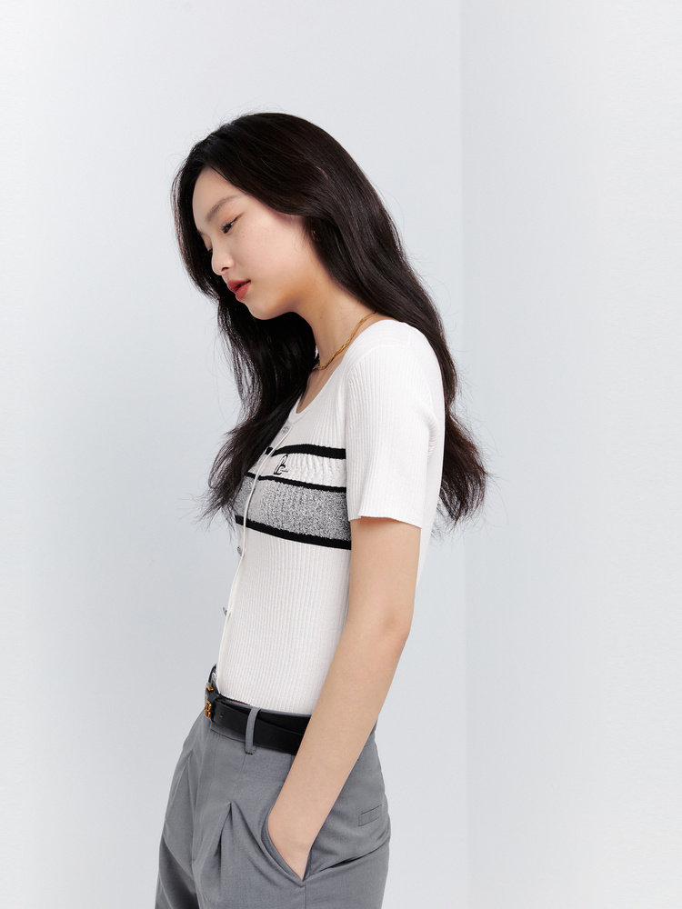 Летняя летняя одежда, трикотажный дышащий дизайнерский свитер, коллекция 2023, короткий рукав, тренд сезона