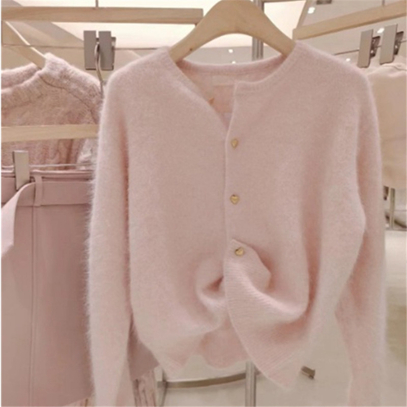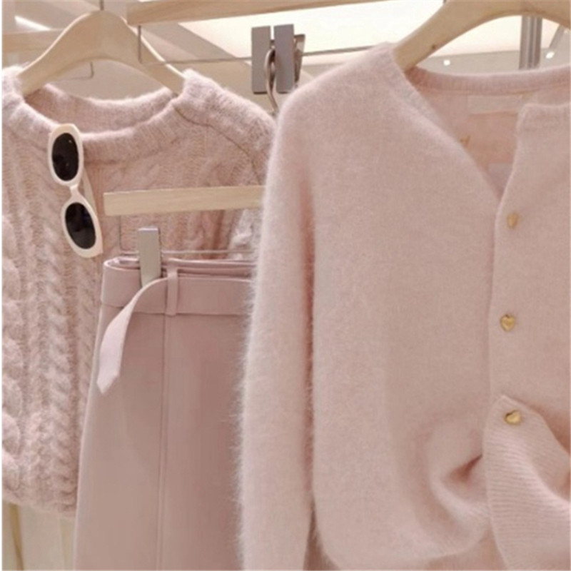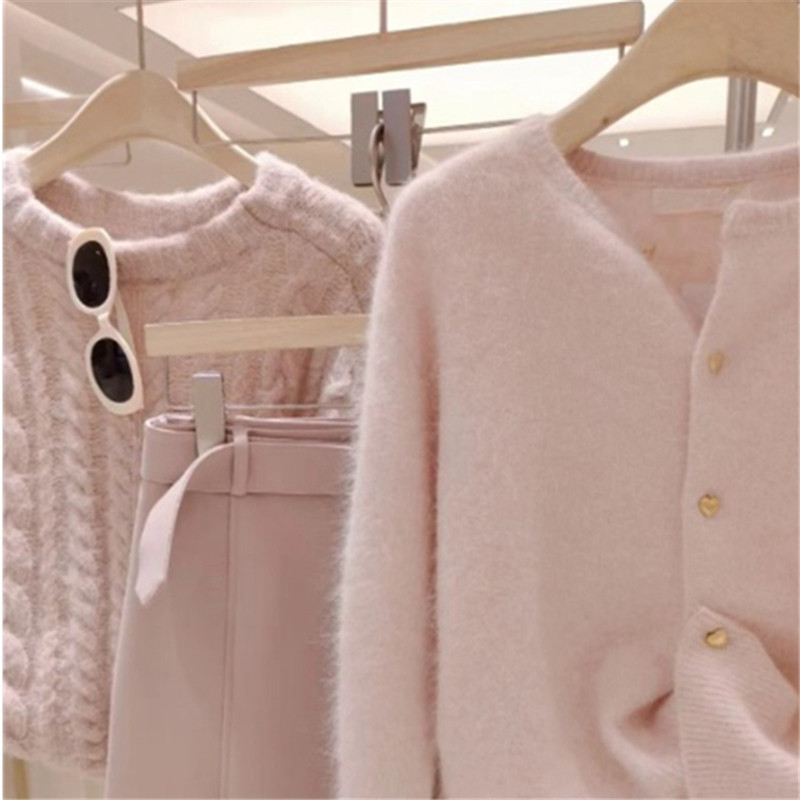 Розовый свитер, осенний кардиган, милая куртка, французский стиль, в стиле Шанель