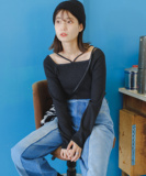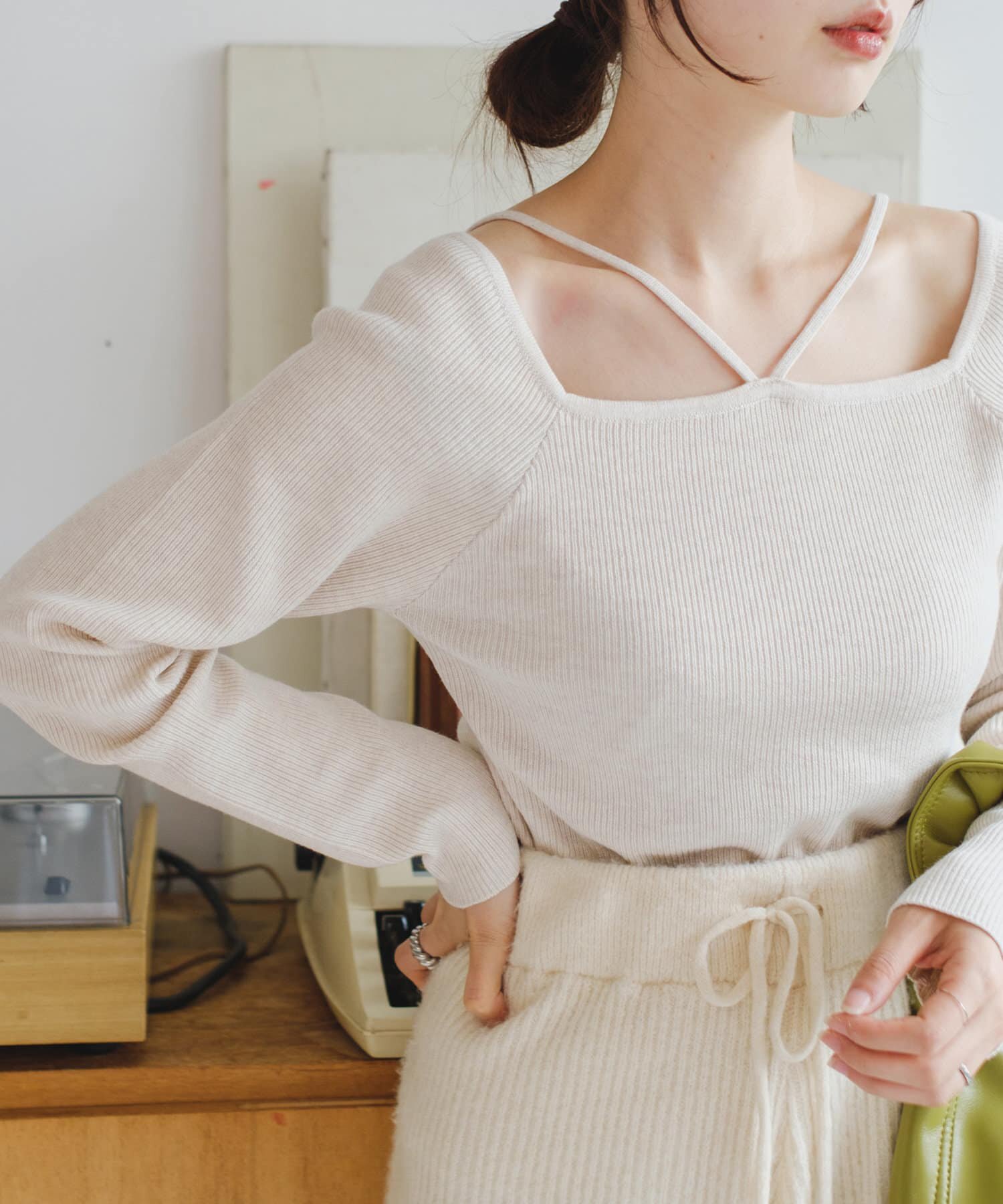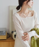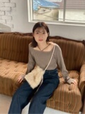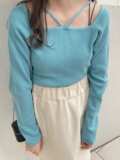 Японский милый весенний дизайнерский трикотажный свитер, базовый приятный телу лонгслив, тренд сезона, квадратный вырез