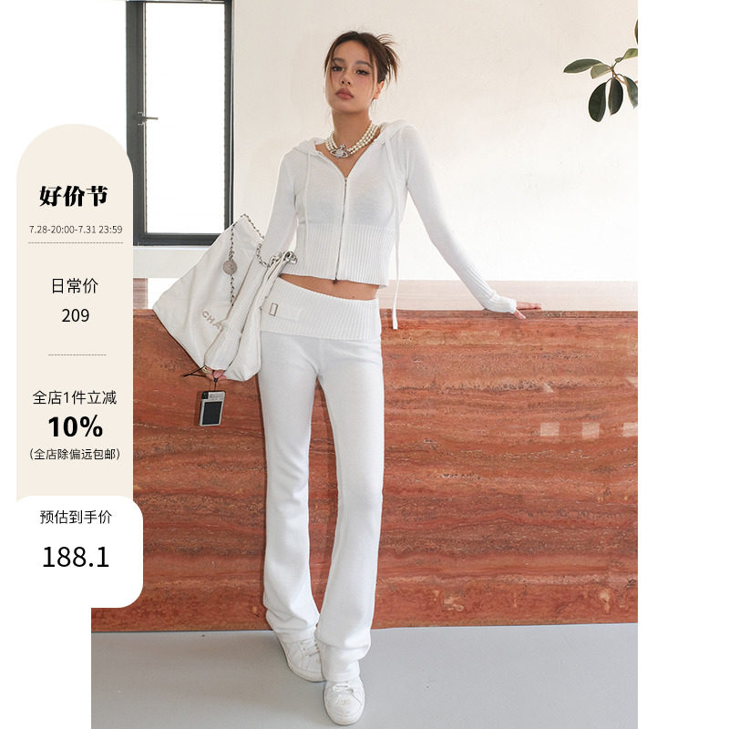 Трикотажный свитер с капюшоном, летний комплект, штаны-клёш