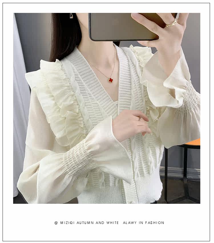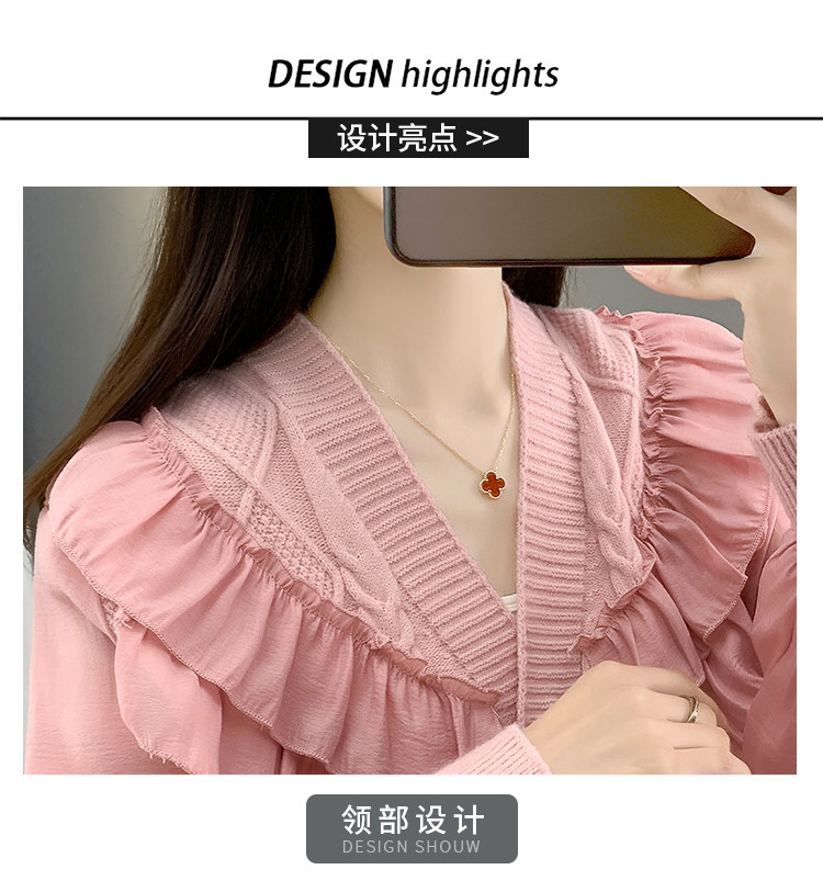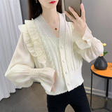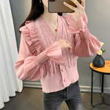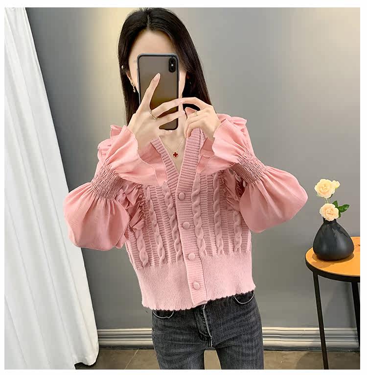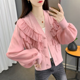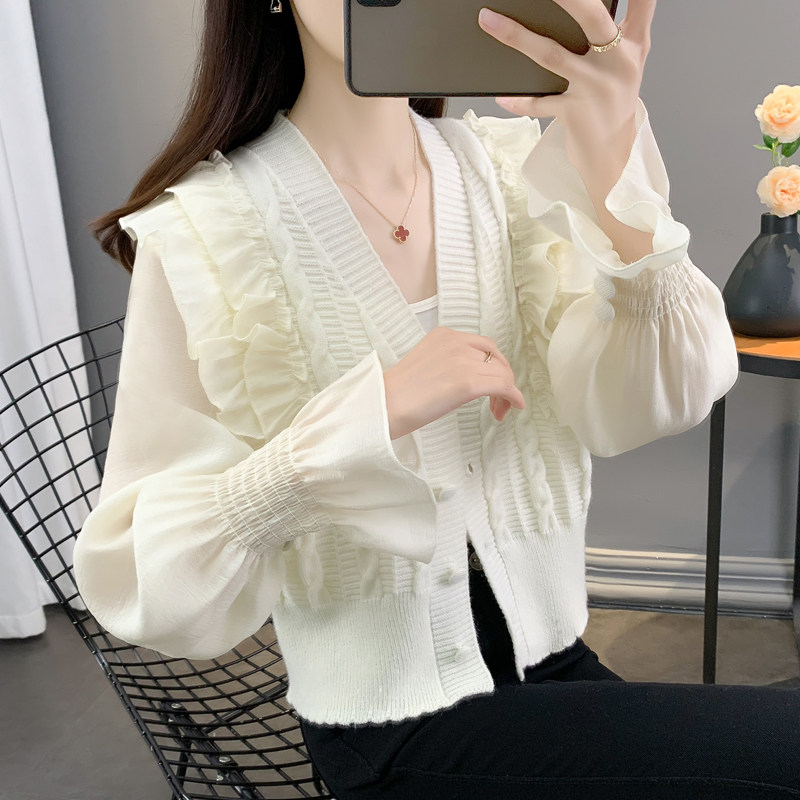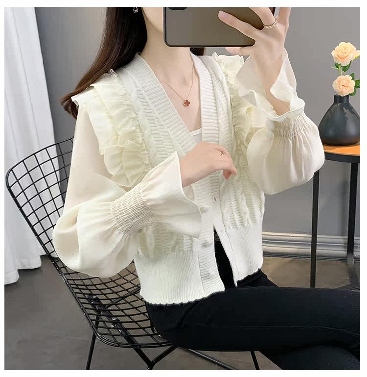Весенний кружевной шифоновый дизайнерский кардиган, короткий свитер, куртка, оверсайз, свободный крой, V-образный вырез