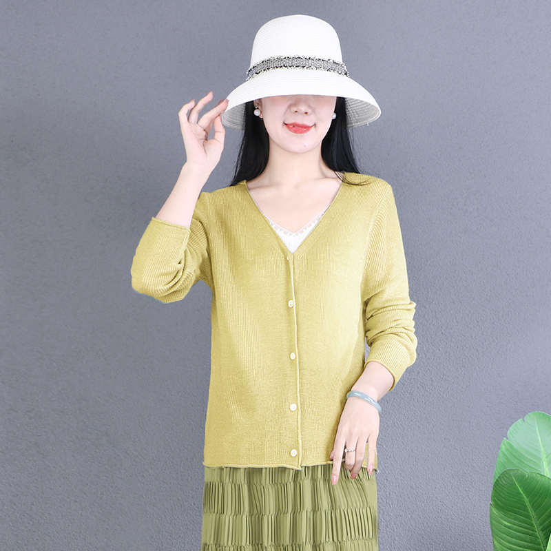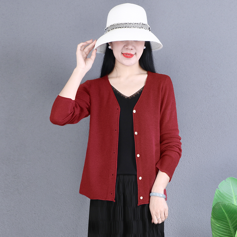 Весенний шерстяной кардиган, V-образный вырез, по фигуре