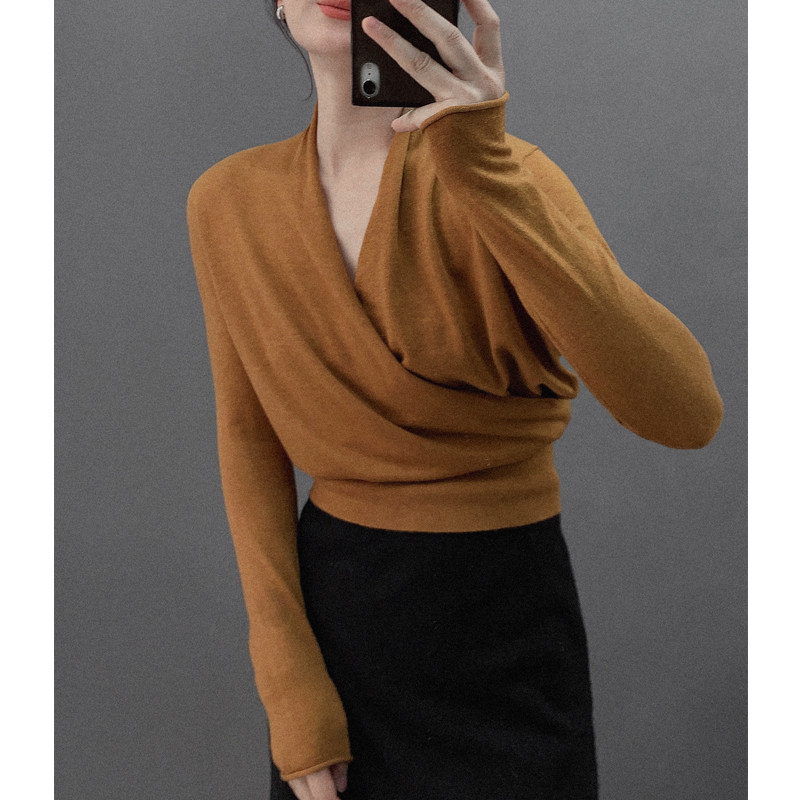 Небольшой дизайнерский базовый трикотажный свитер, тренд сезона, 2023