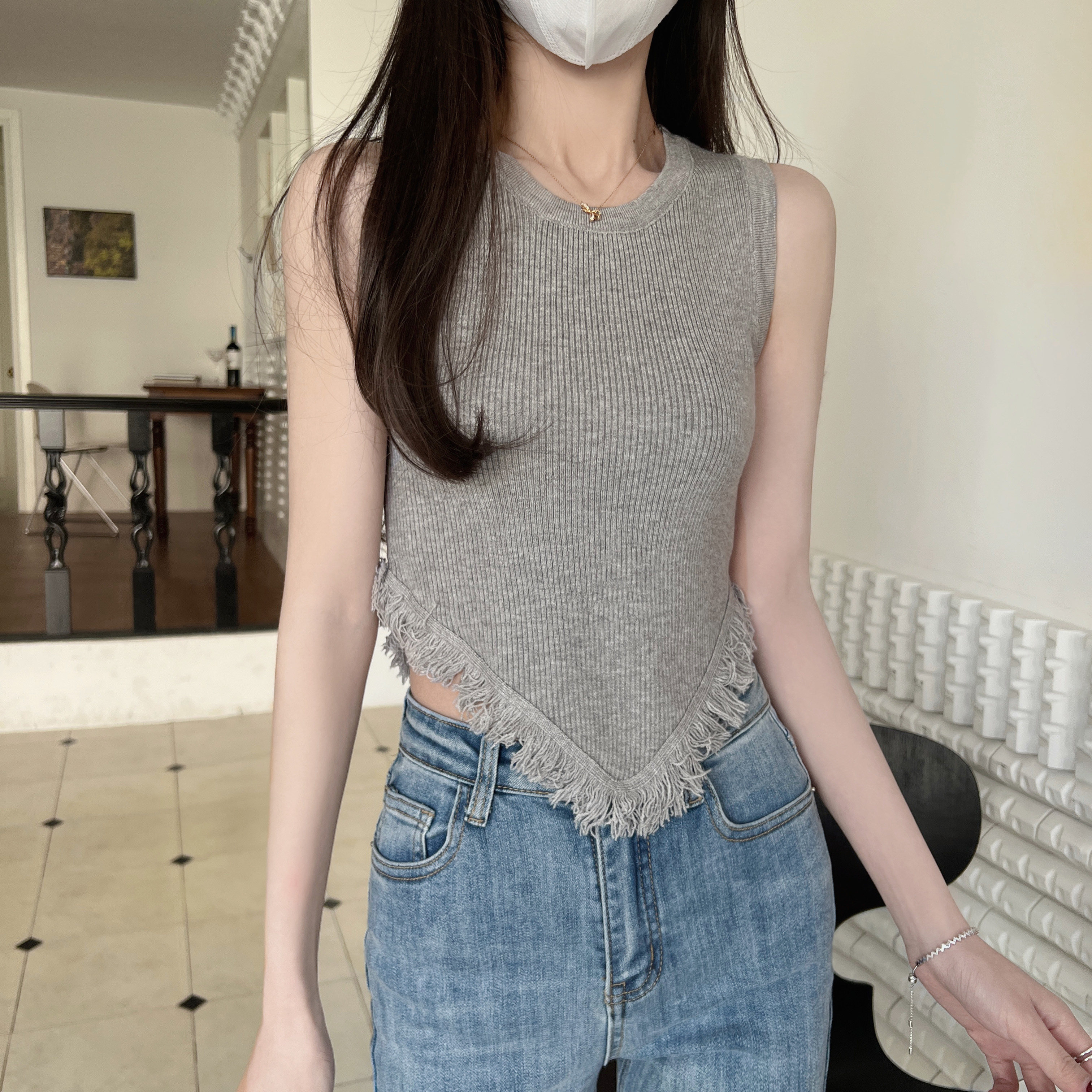 Tide, летний дизайнерский трикотажный свитер без рукавов, жилет, в корейском стиле, тренд сезона